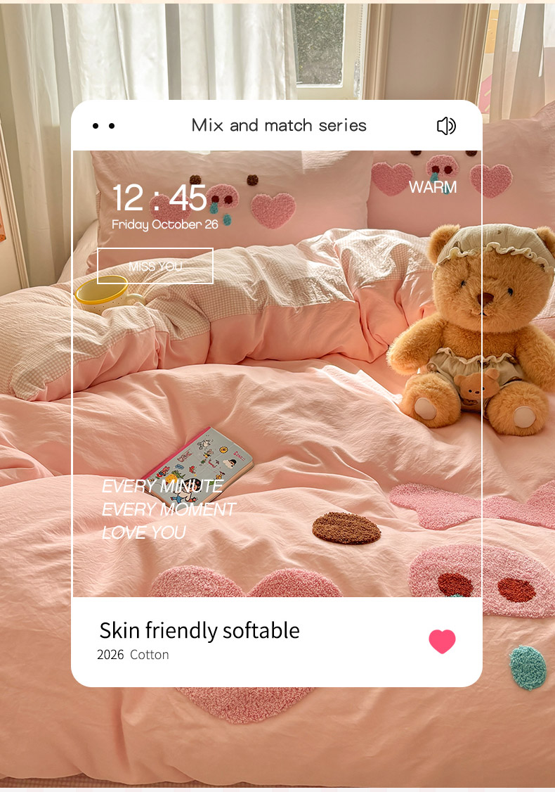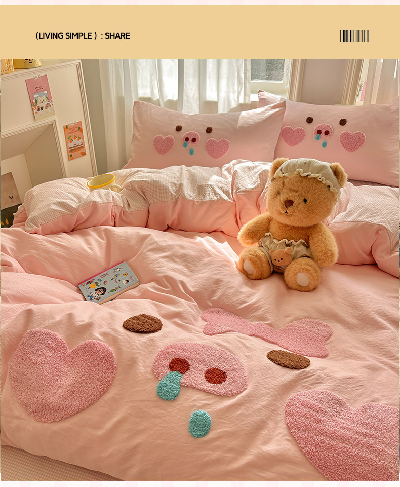 (总)色鬼布艺高端家居主号 2025秋冬新款网红款水洗棉四季款四件套,豹纹熊-粉,豹纹熊-绿,彩虹兔,格子熊,公仔蓝,梦幻粉,梦幻蓝,棋盘格公仔,太阳花粉,天使熊-粉,天使熊-咖,小熊头,熊头白,熊头橙,熊头咖,熊仔白