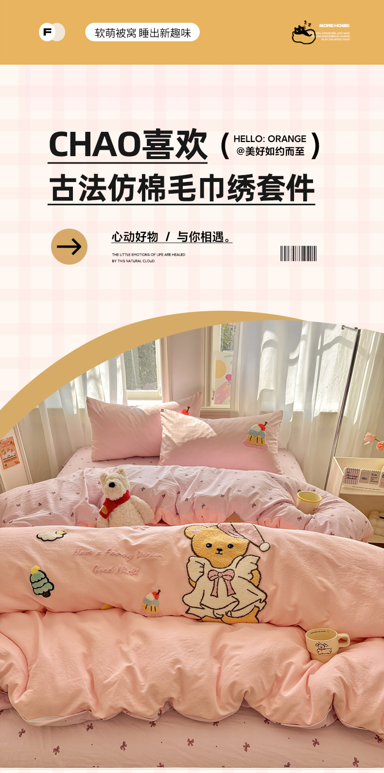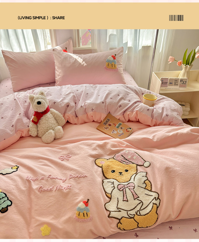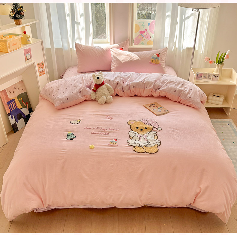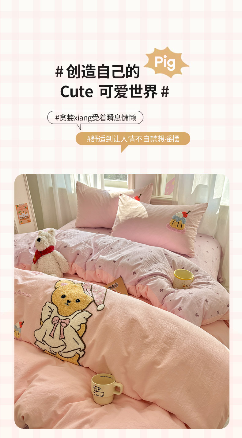 当前位置: 91家纺网 > 商品网购 > 床品套件 > 四件套 > 其它四件套 > 色鬼布艺高端家居主号 2026新款古法毛巾绣四件套 蛋糕小熊-粉
