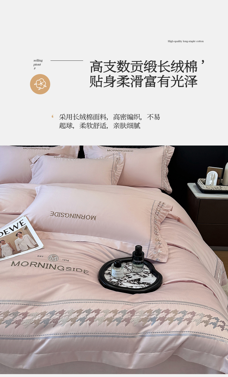 当前位置: 91家纺网 > 商品网购 > 床品套件 > 四件套 > 长绒棉四件套 > (总)优眠坊 2026春夏新款高档礼盒装5050S贡缎长绒棉刺绣四件套100%纯棉全棉轻奢床品-千鸟格
