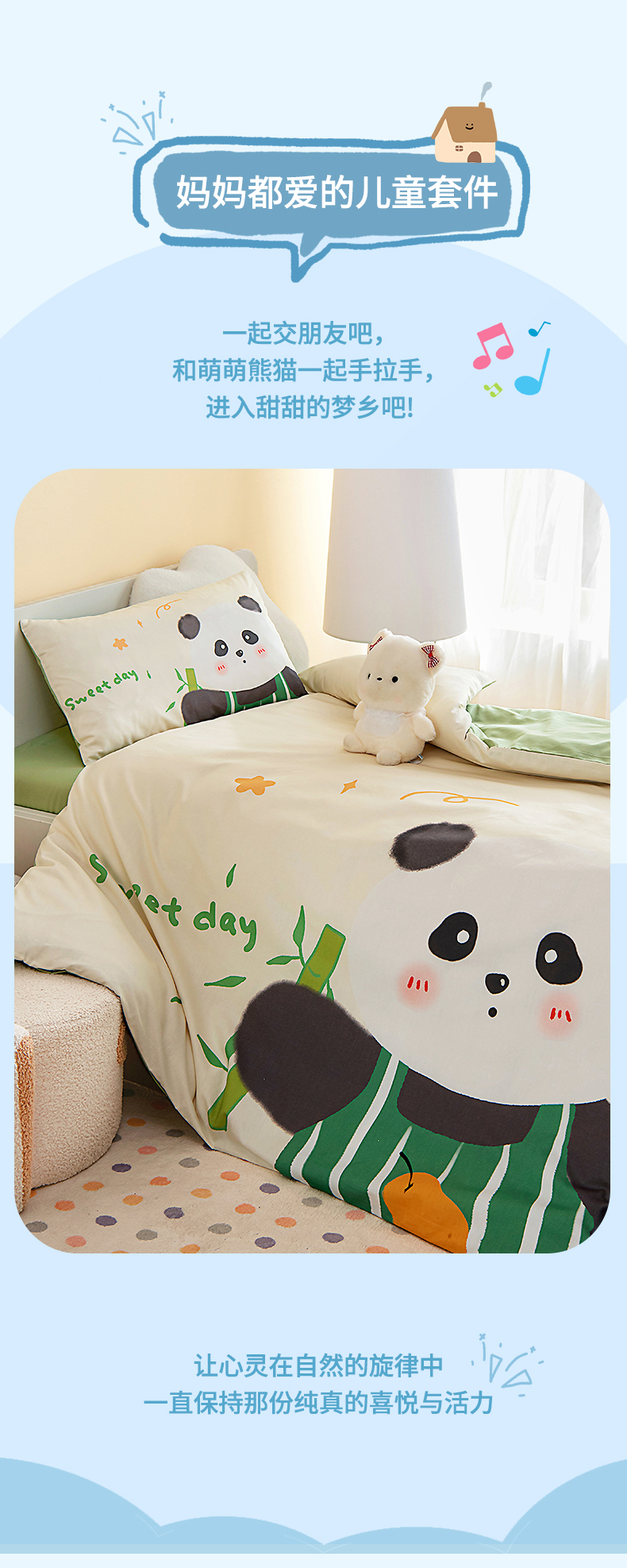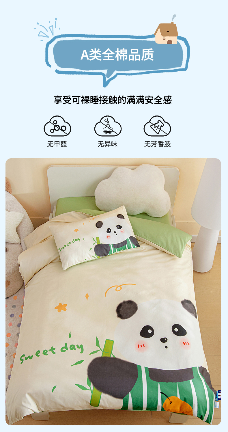 当前位置: 91家纺网 > 商品网购 > 床品套件 > 四件套 > 全棉普通四件套 > 御棉坊 2026新款A类40S全棉数码印花-萌萌季系列幼儿园儿童套件 萌萌熊猫