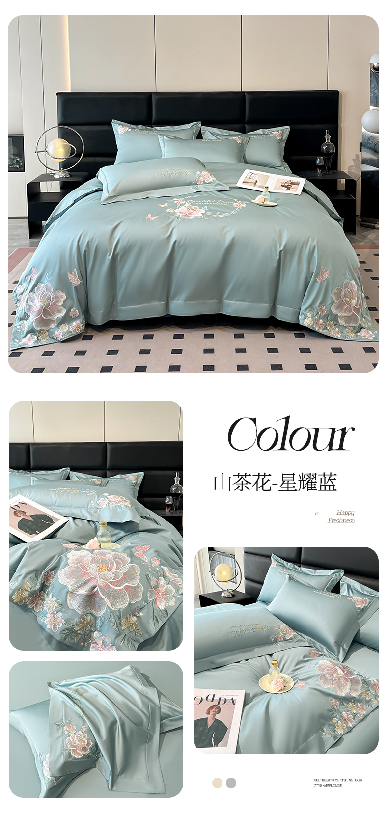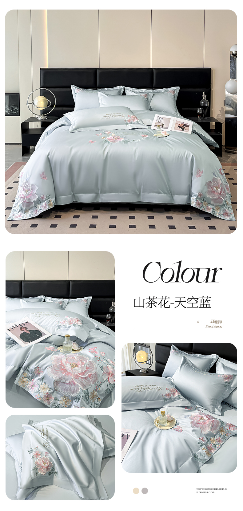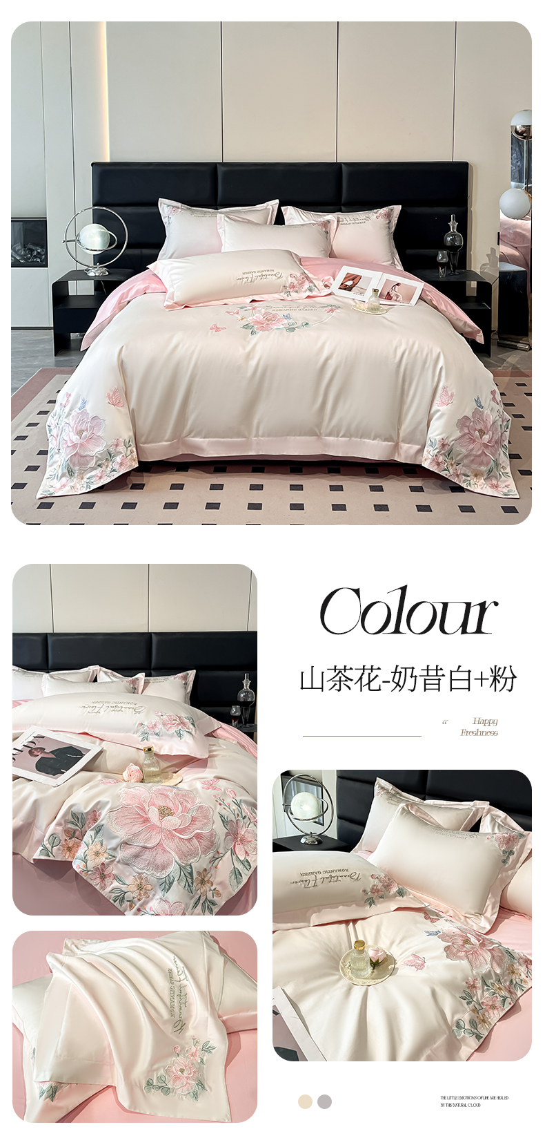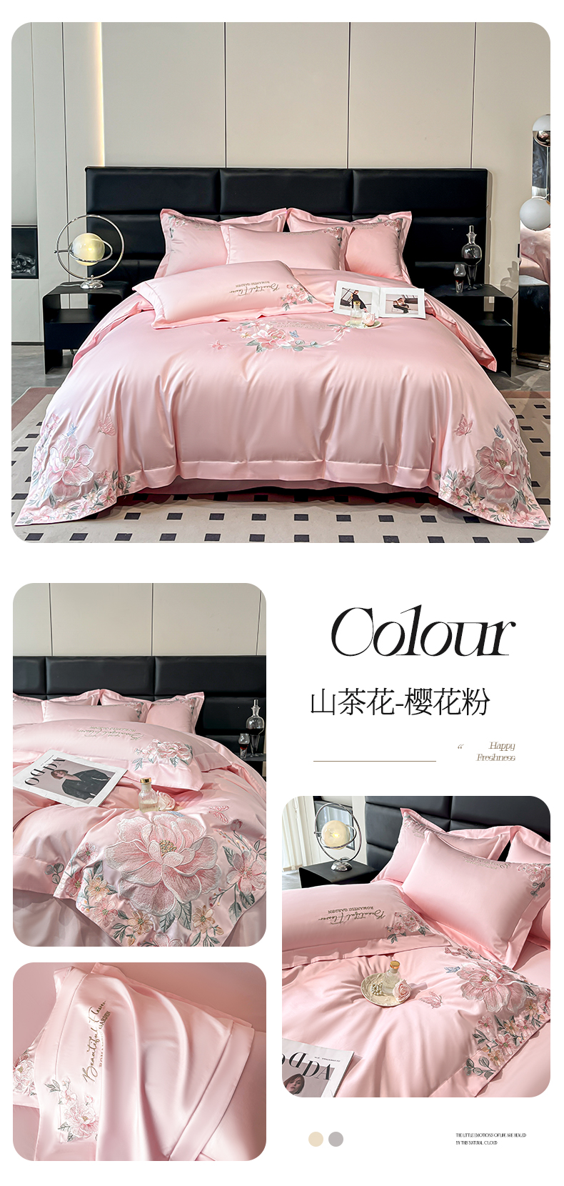 (总)润锦云 2026新款A类亲肤棉精品刺绣四件套-山茶花系列