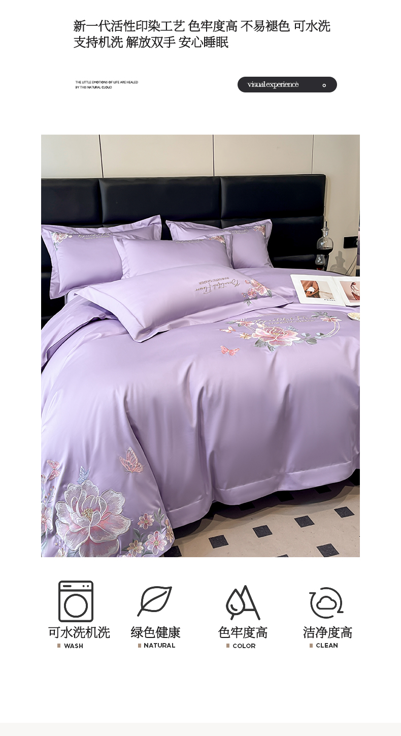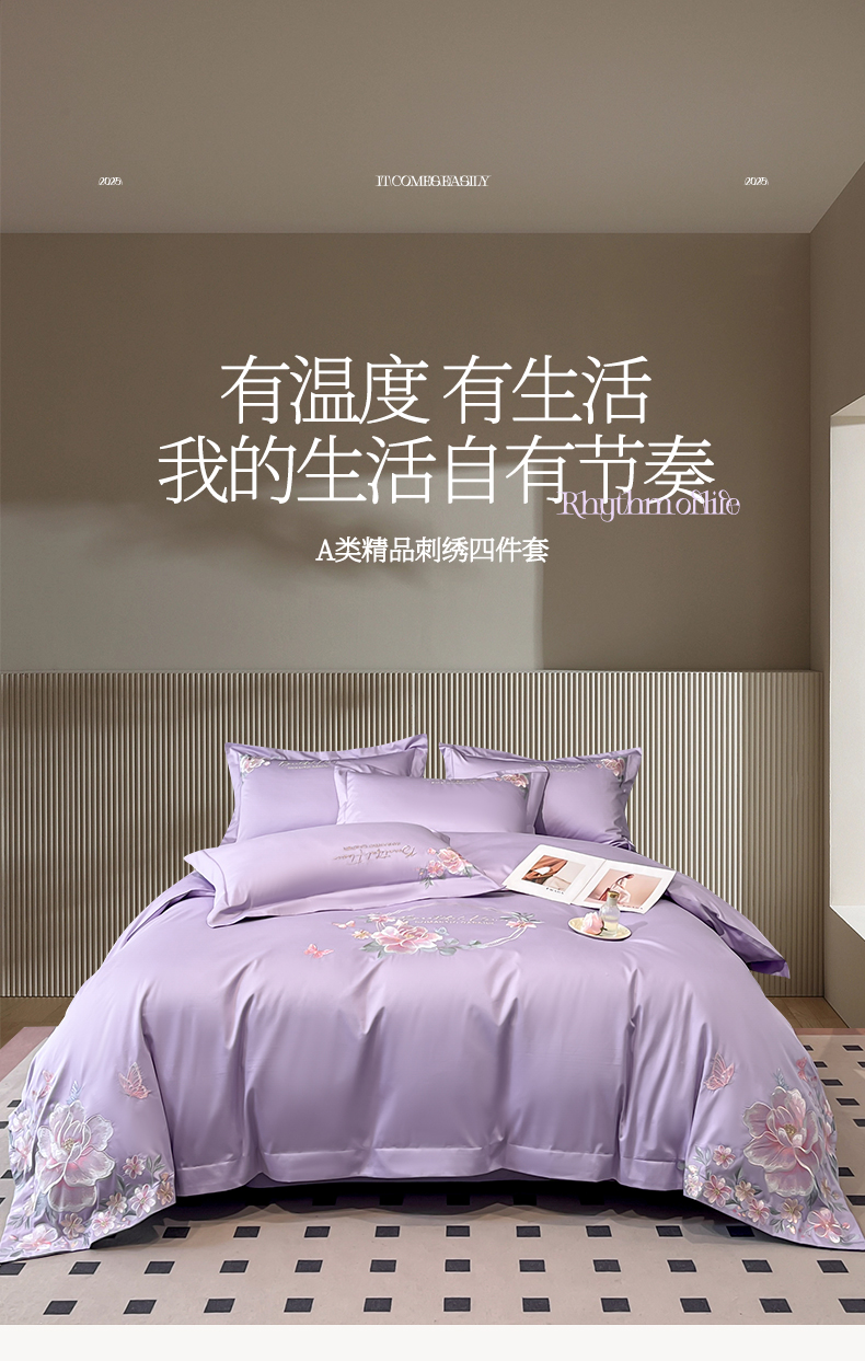 (总)润锦云 2026新款A类全棉纯棉刺绣四件套-花漾,花漾-芙芮粉,花漾-梦幻紫,花漾-柔雾蓝,花漾-香槟色,花漾-星辰灰,花漾-云母白+梦幻紫