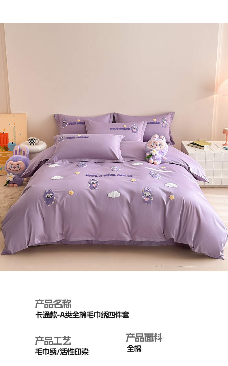 当前位置: 91家纺网 > 商品网购 > 床品套件 > 四件套 > 全棉普通四件套 > (总)润锦云 2026新款卡通款-A类全棉纯棉毛巾绣四件套