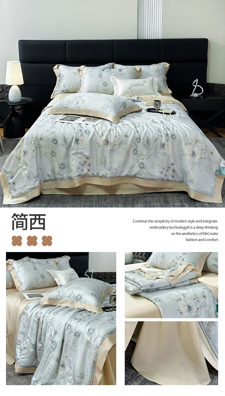 • 91家纺网 家纺一手货源 找家纺 岚司羽 2026春夏新款50天丝夏被四件套夏凉被空调被系列 香荟