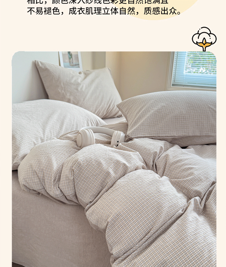 当前位置: 91家纺网 > 商品网购 > 床品套件 > 四件套 > 全棉普通四件套 > 佑佳家纺 2026新款全棉色织水洗棉四件套 米小格