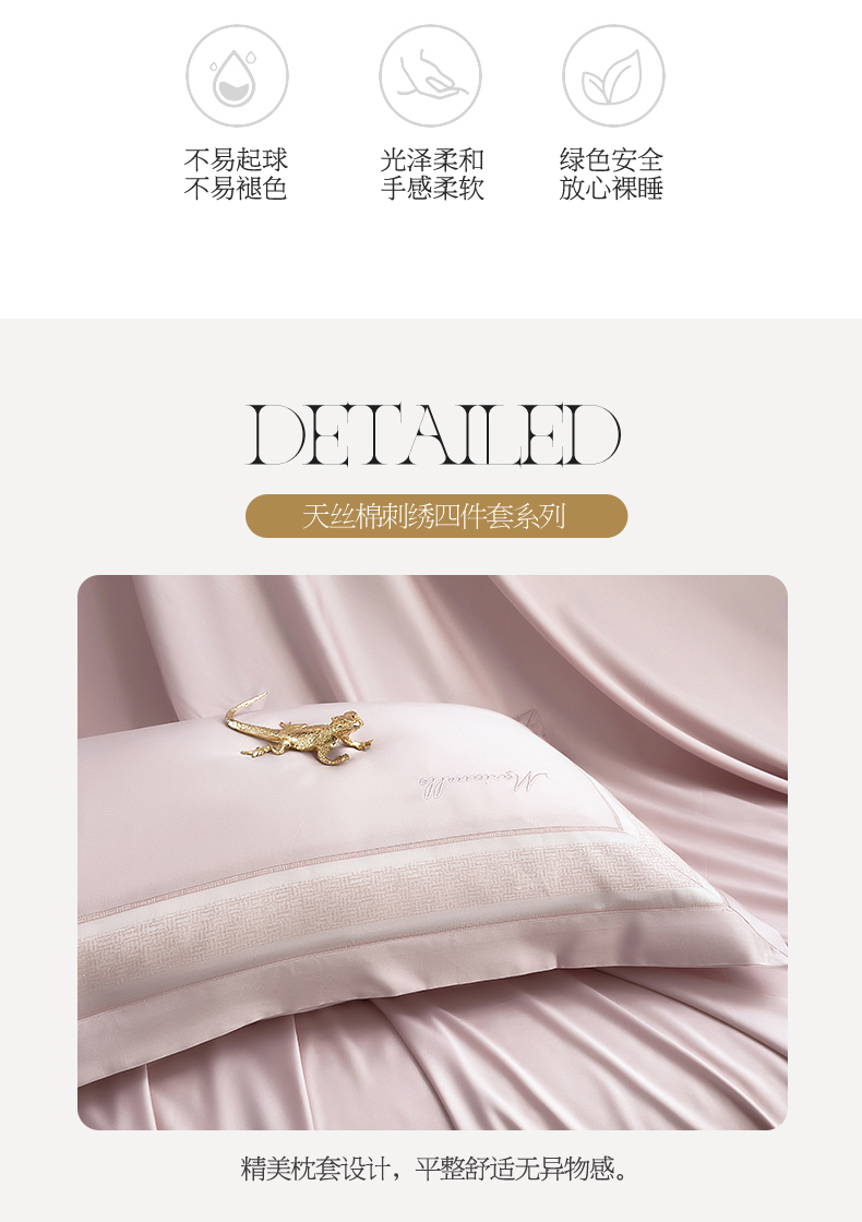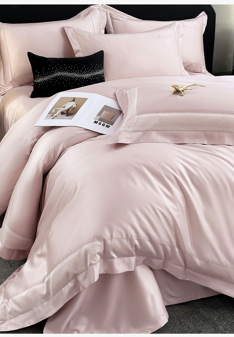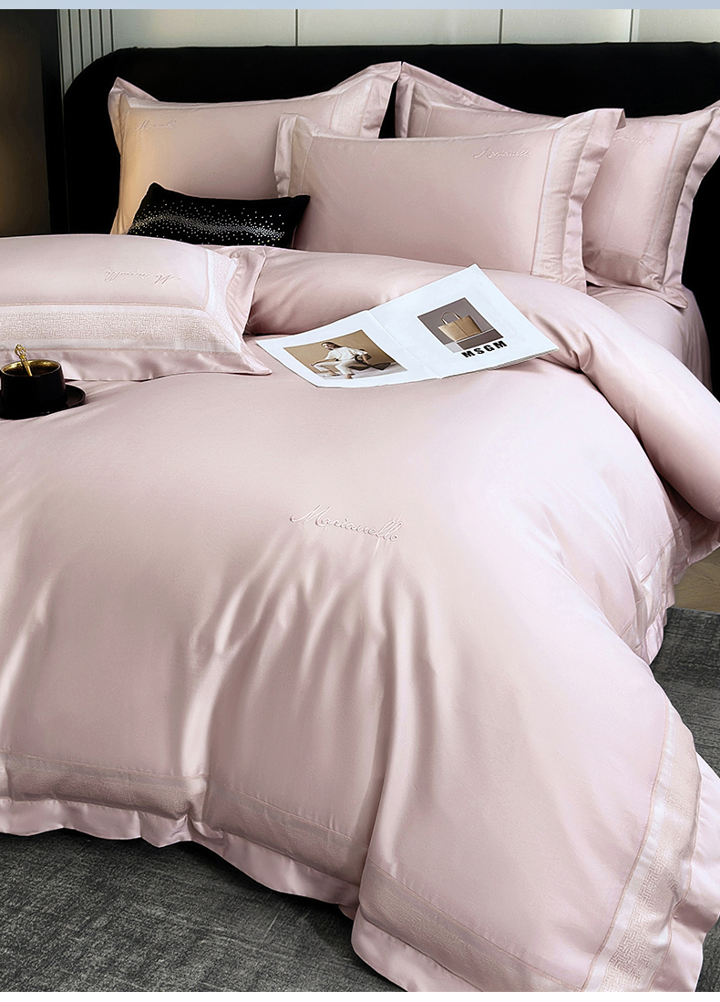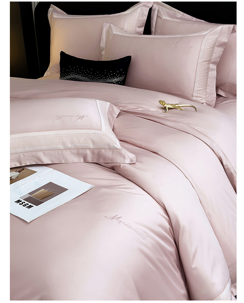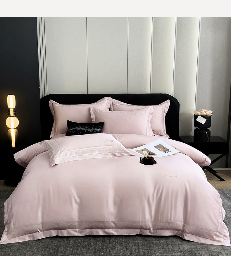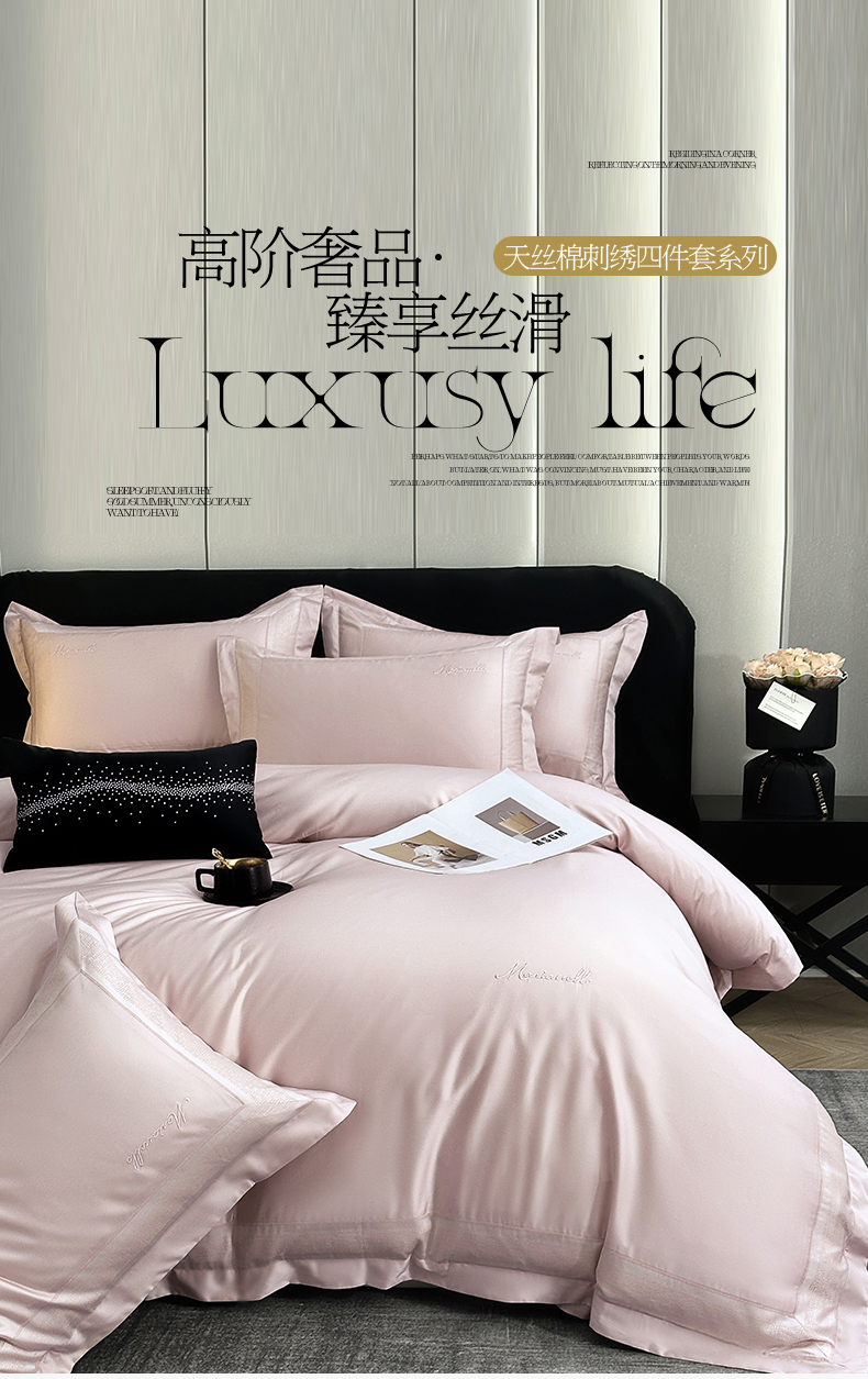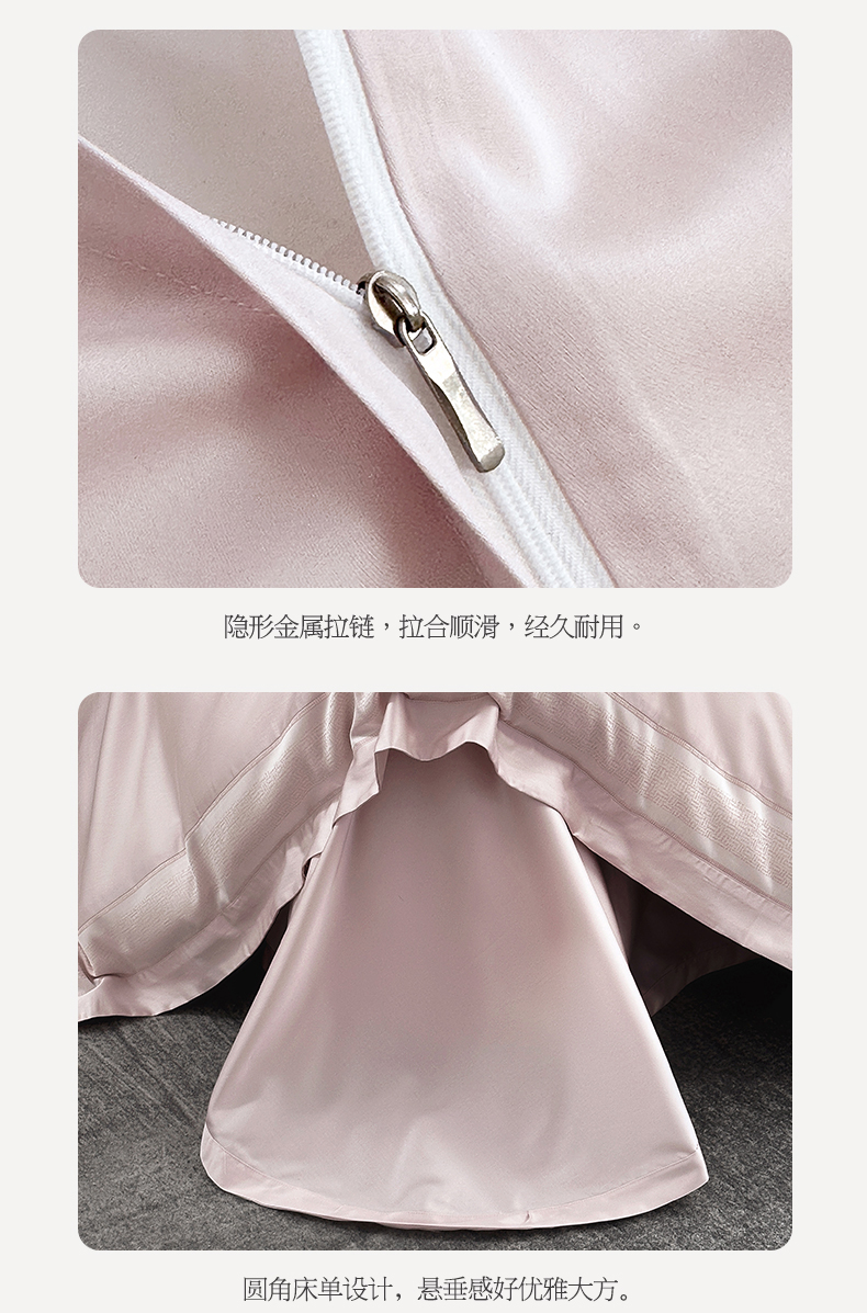 岚司羽 2026春夏新款天丝棉银丝提花绣花四件套臻雅系列 臻雅--樱花粉