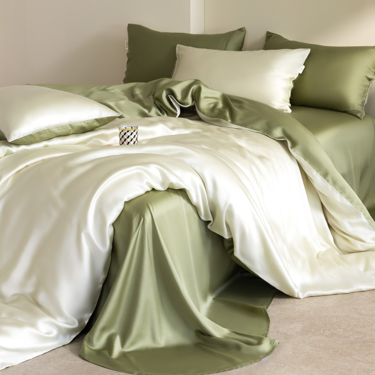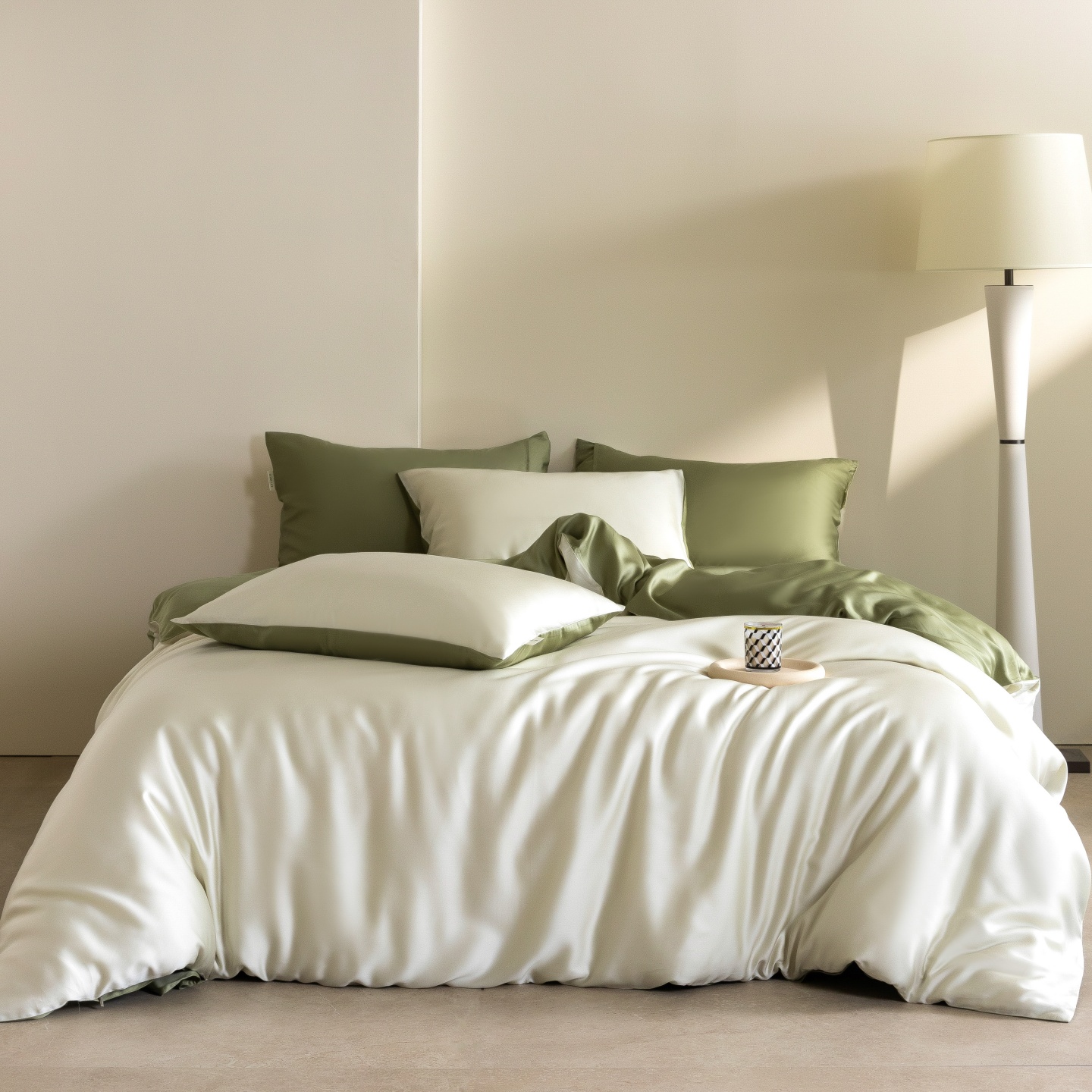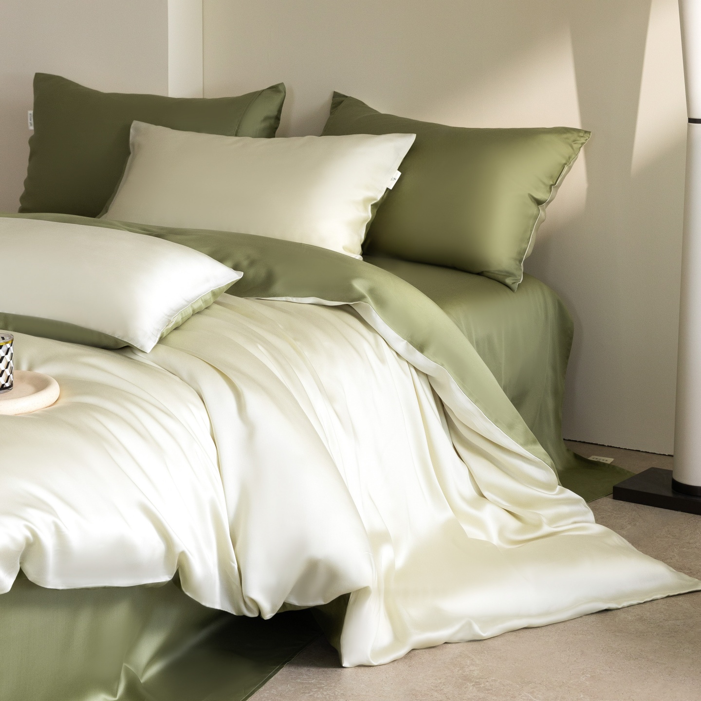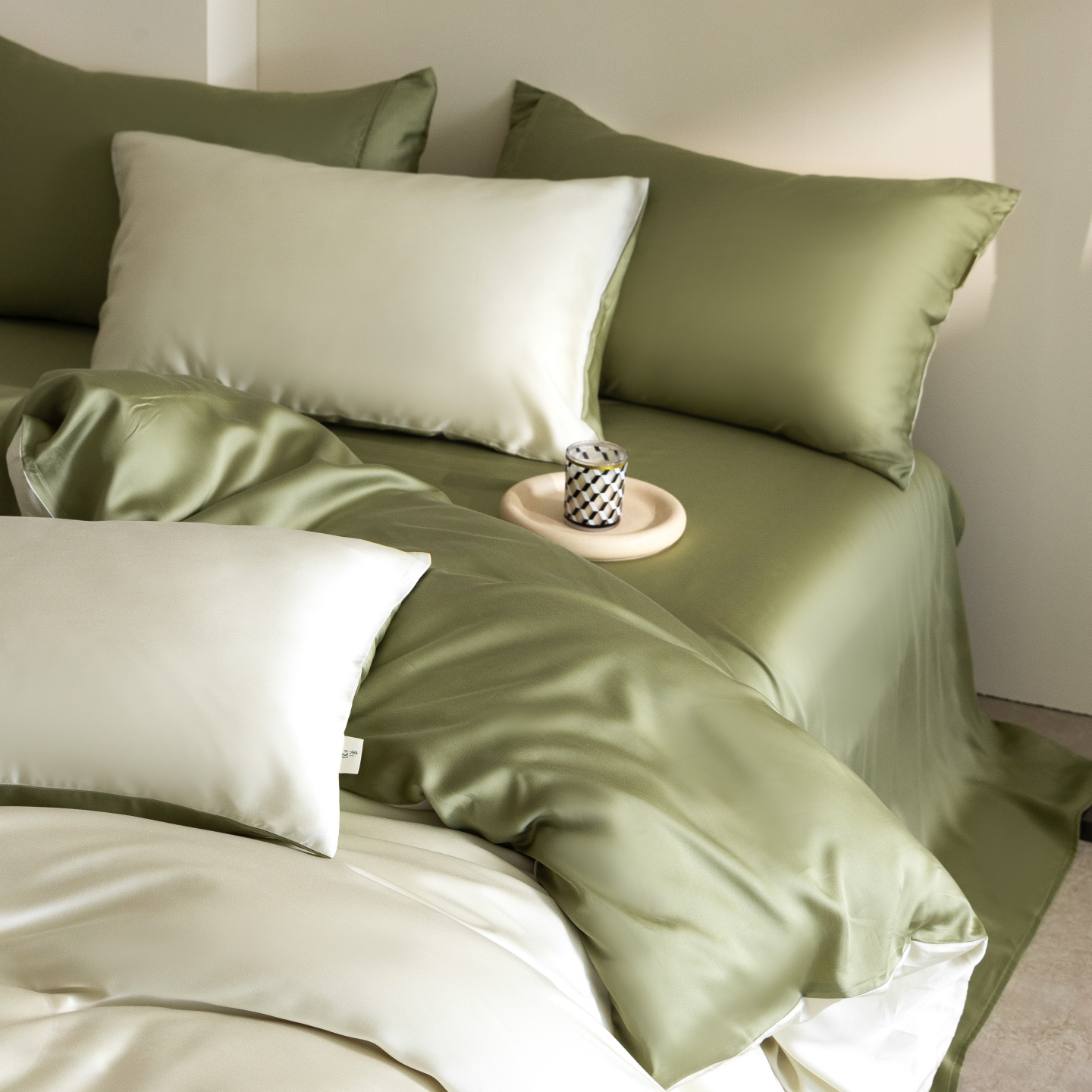 商品名称:时亿家居 2026春夏新款60天丝-丝颜悦色系列-被套四件套 瓷器绿