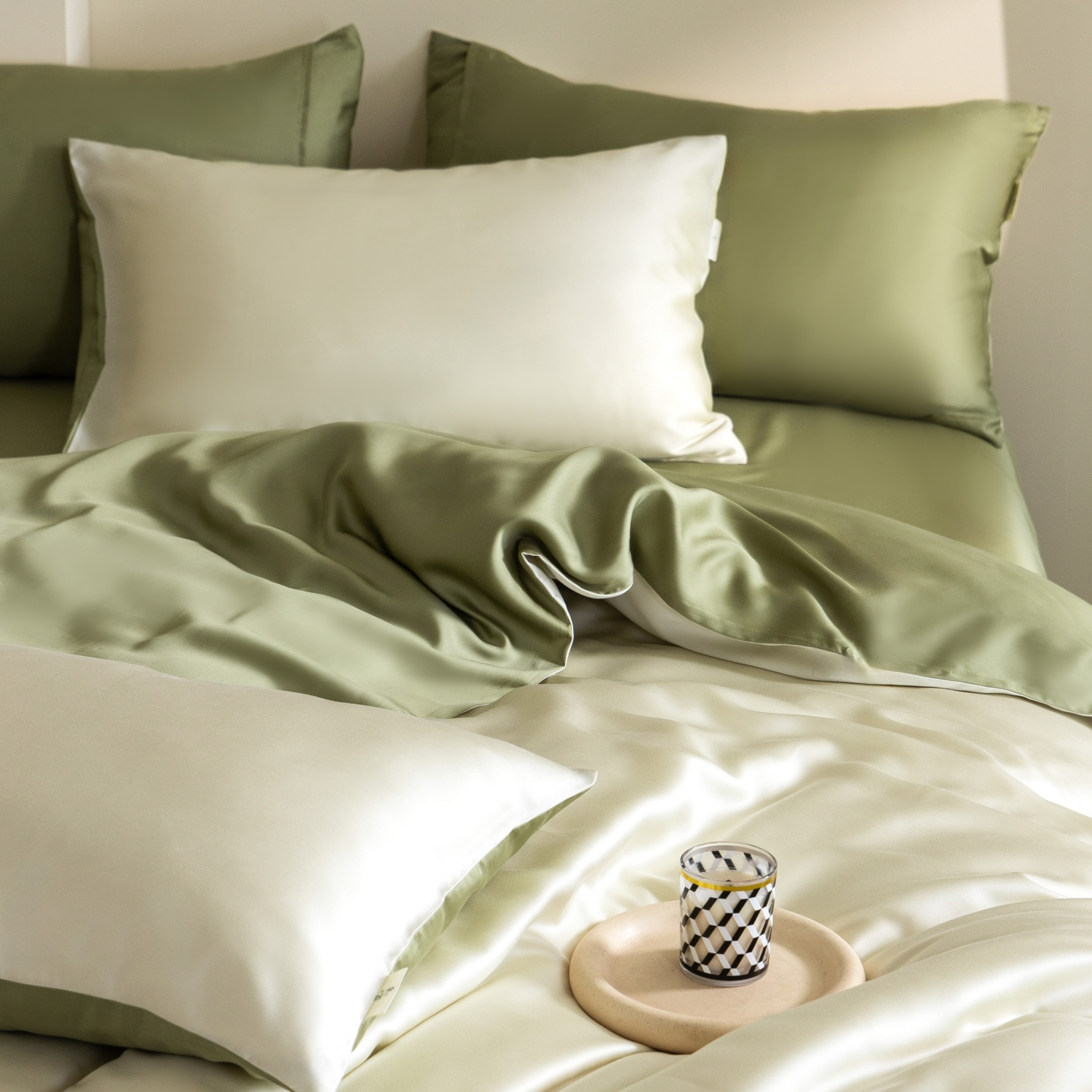 时亿家居 2026春夏新款60天丝-丝颜悦色系列-被套四件套 瓷器绿