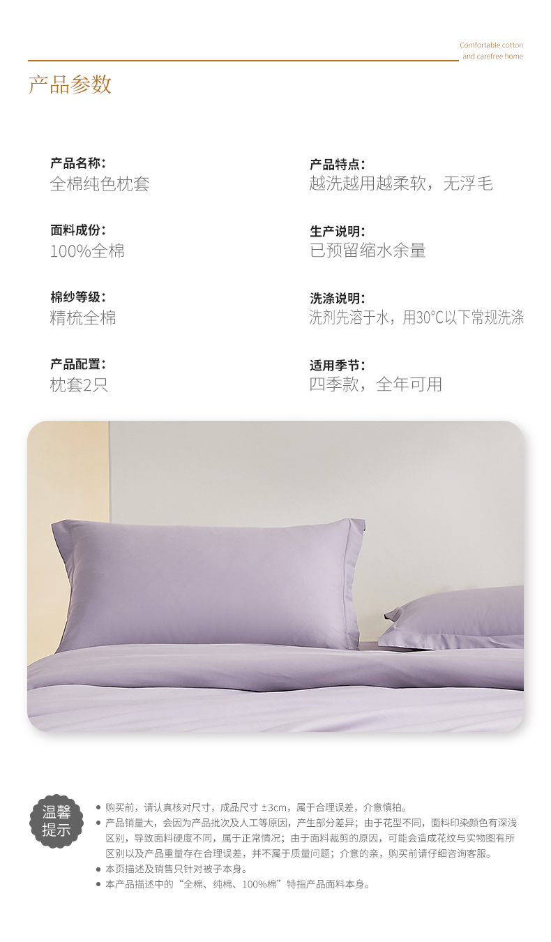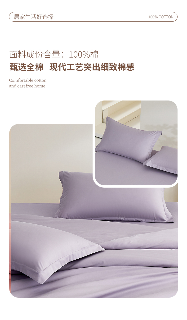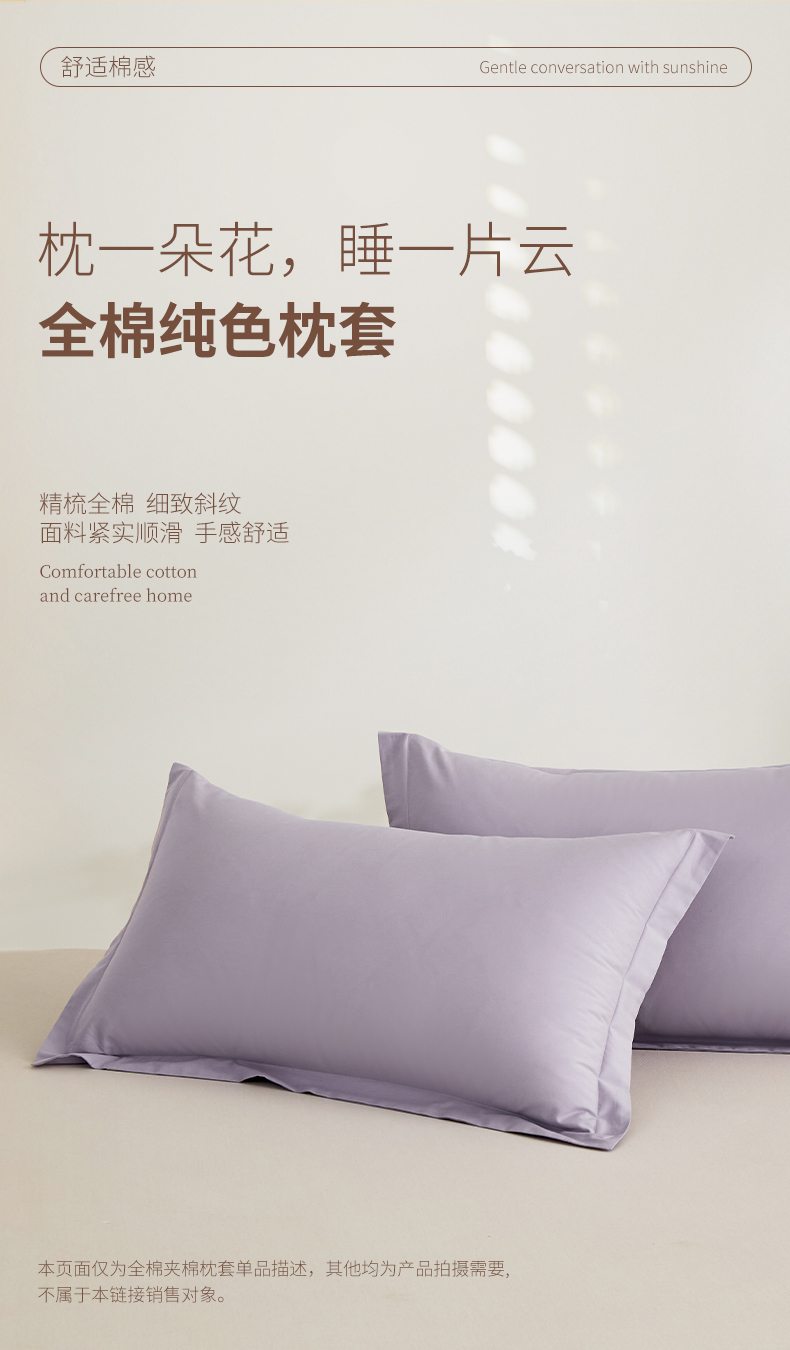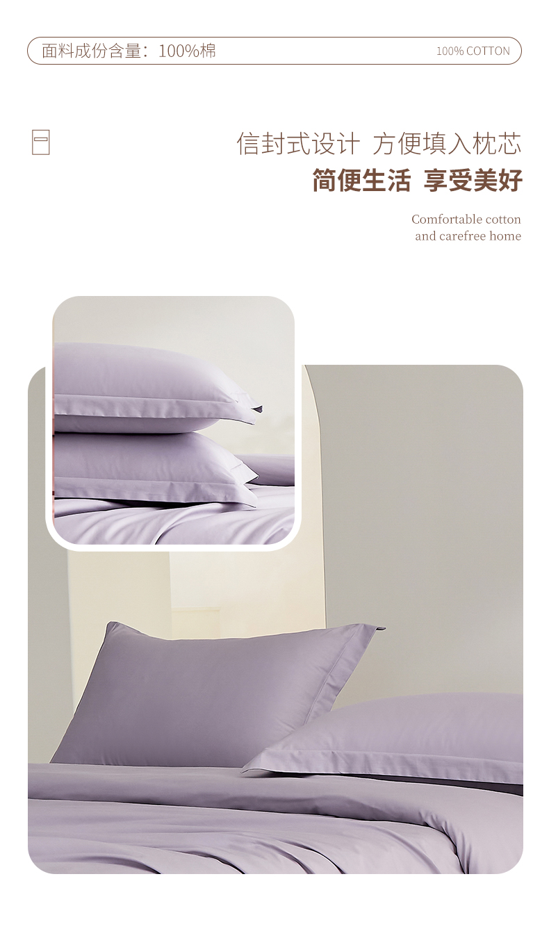 商品名称:元元家居(元元被业) 2026新款全棉纯棉13372套件及单品【纯色款】-单枕套枕套单件 罗兰紫