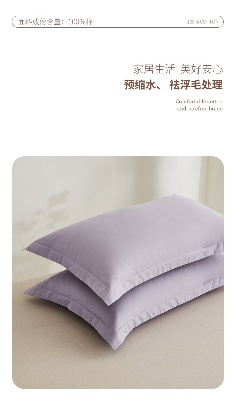 元元家居(元元被业) 2026新款全棉纯棉13372套件及单品【纯色款】-单枕套枕套单件 罗兰紫