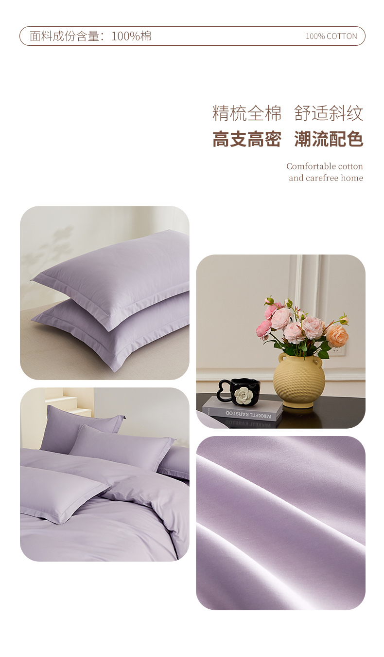 (总)元元家居(元元被业) 2026新款全棉纯棉13372床盖款四件套-纯色款,果粉,罗兰紫,麦田绿,天梦蓝,炫彩粉,雅灰