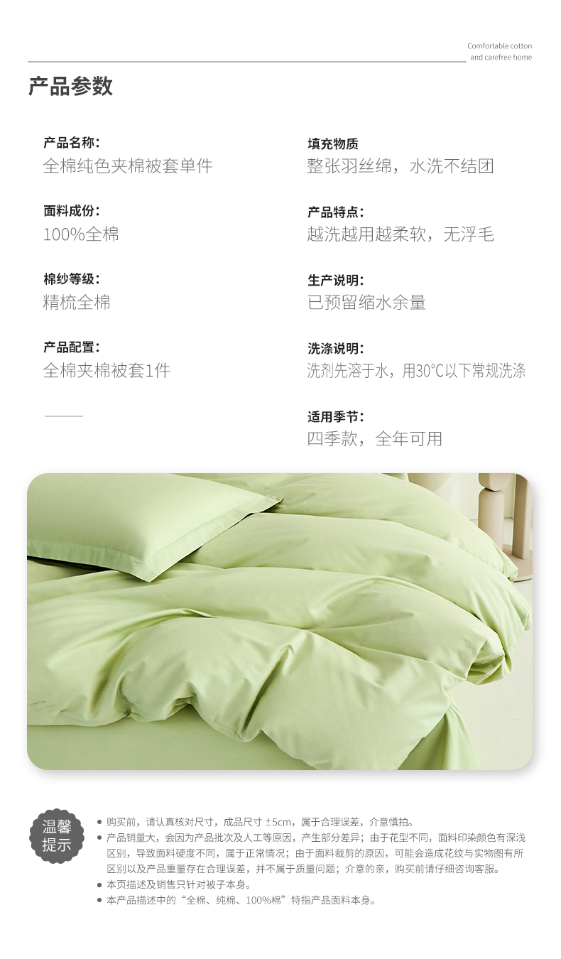 商品名称:元元家居(元元被业) 2026新款全棉纯棉13372套件及单品【纯色款】-单夹棉被套夹棉被套单件 麦田绿