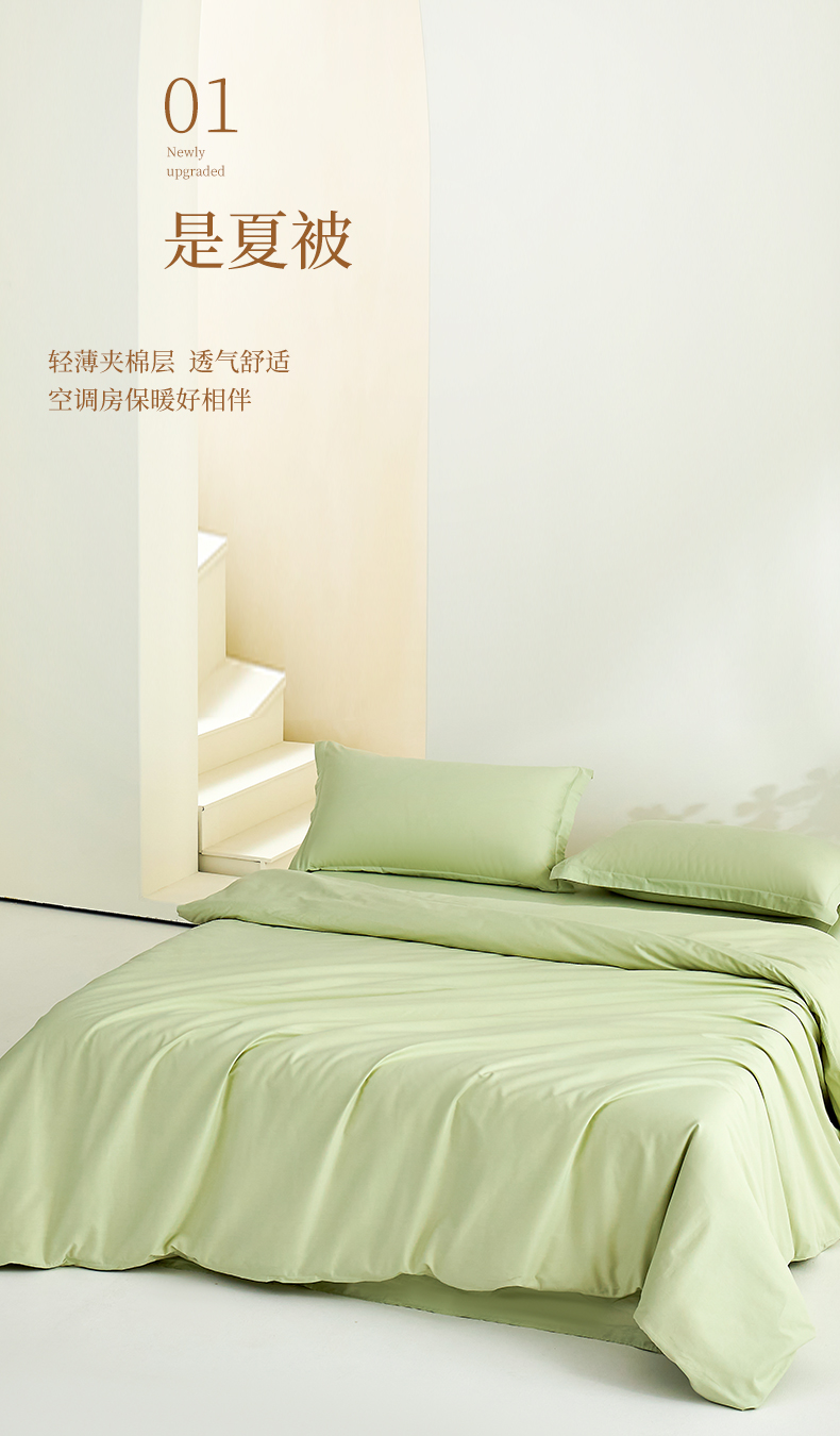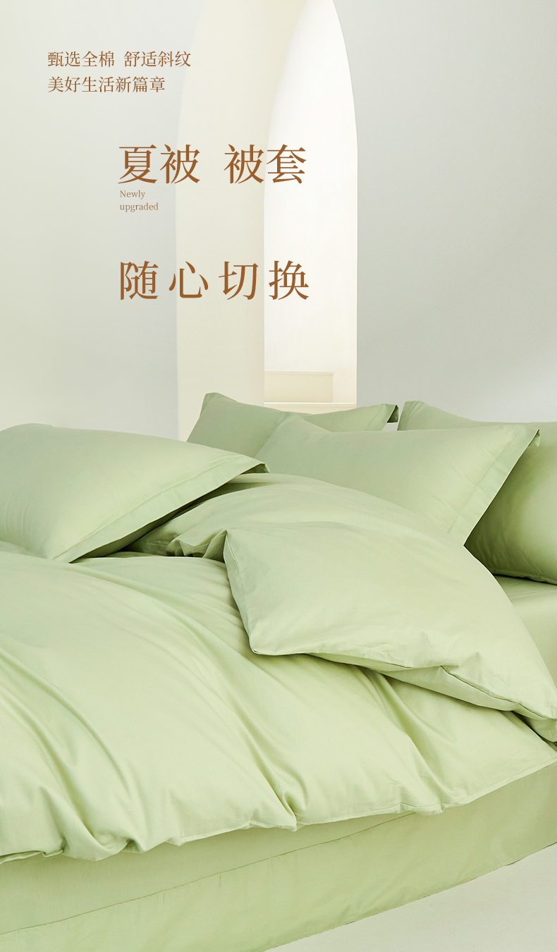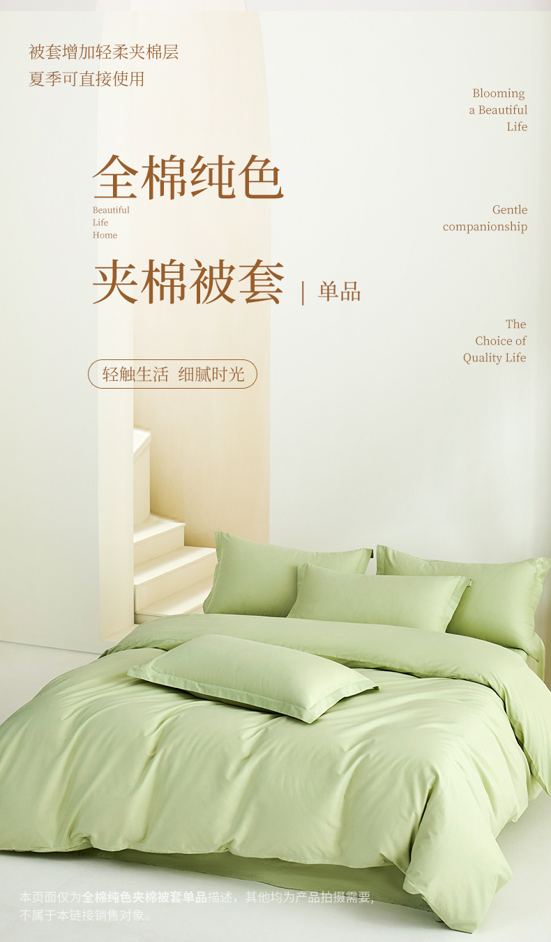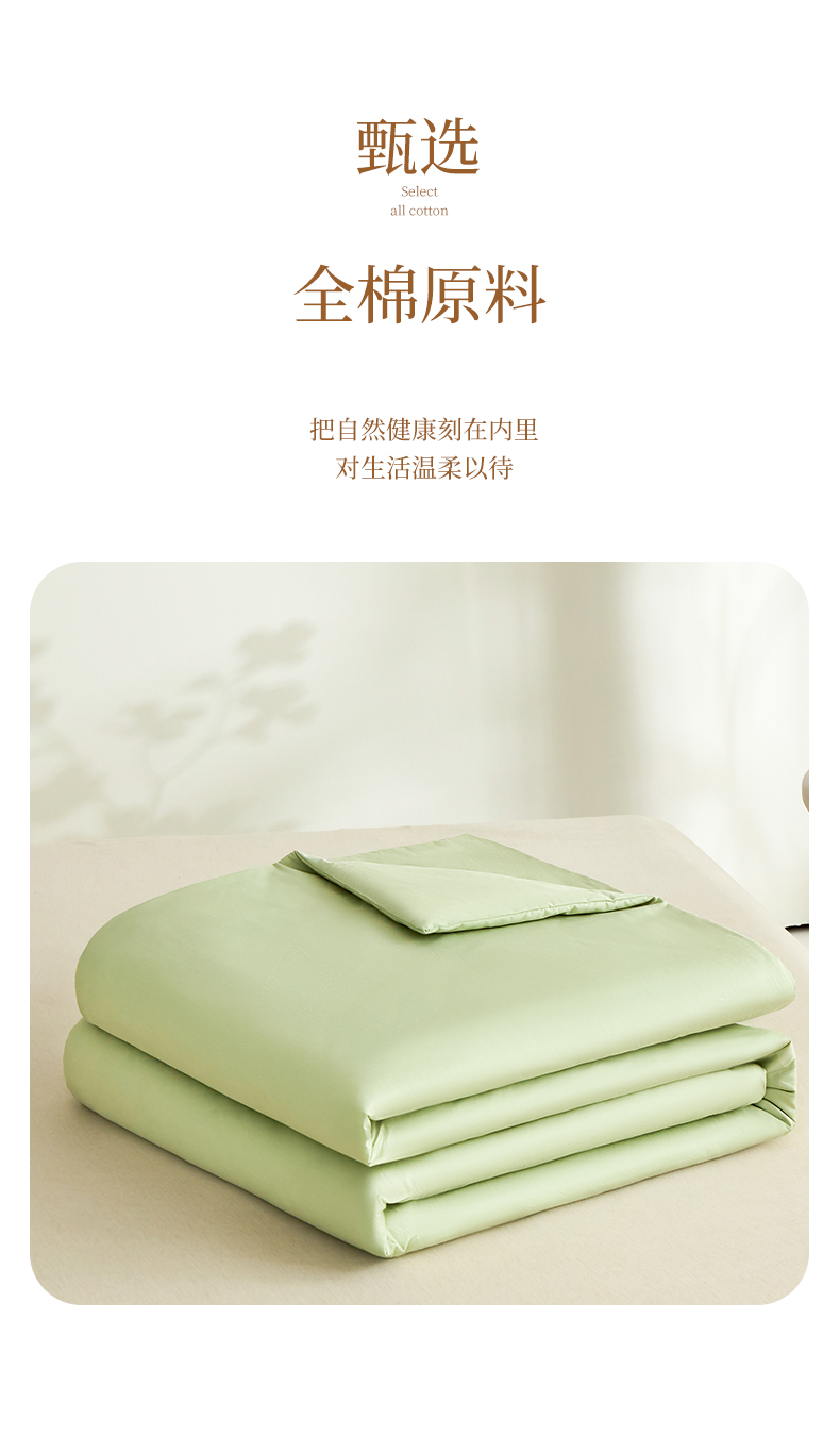 元元家居(元元被业) 2026新款全棉纯棉13372套件及单品【纯色款】-单夹棉被套夹棉被套单件 麦田绿
