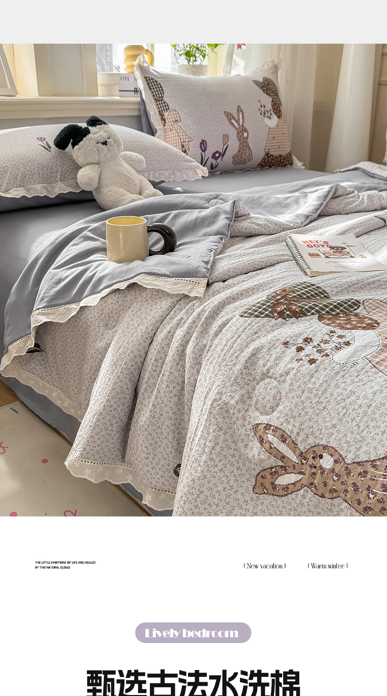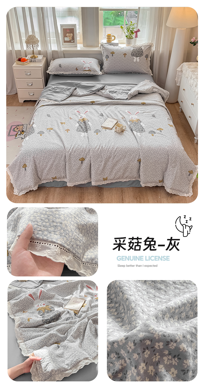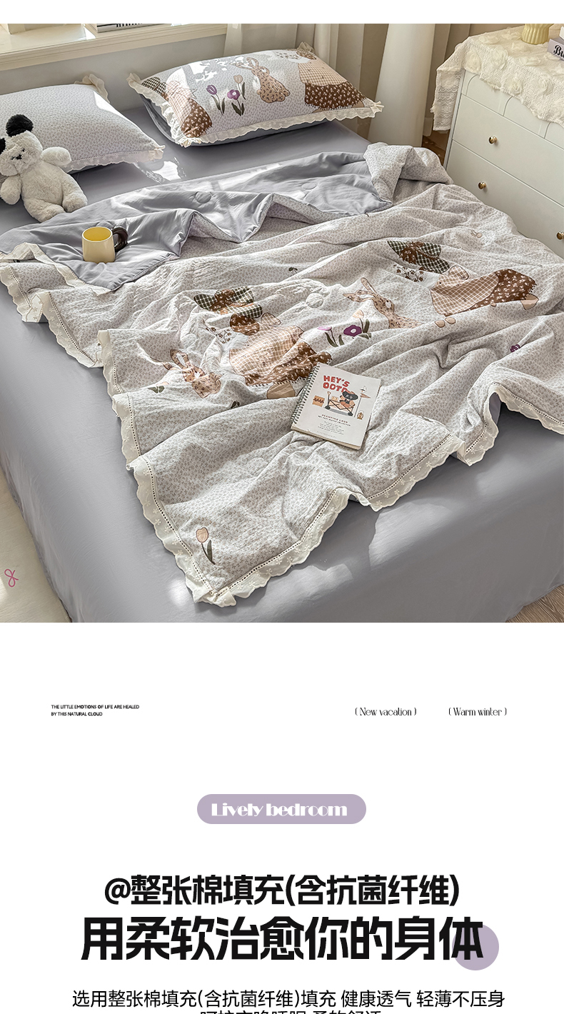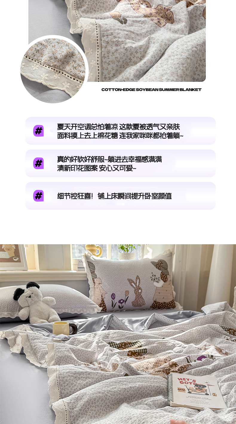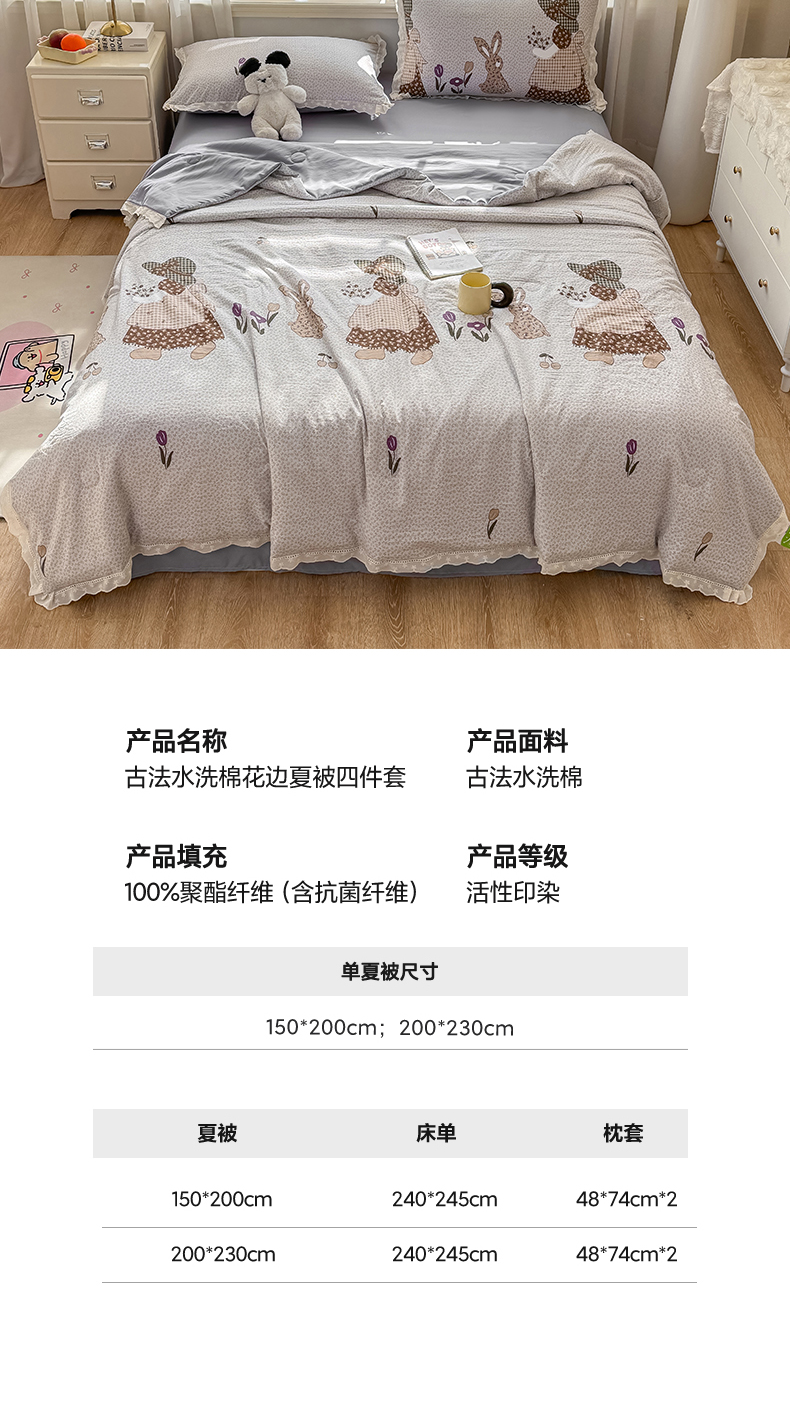 (总)憨豆家纺 2026春夏新款古法仿棉夏被四件套镂空花边大板印花夏凉被空调被(含抗菌纤维),采菇兔-粉,一束繁花,安娜花园,采菇兔-灰,花之邂逅,梦马生花,情同手足,小熊烂漫