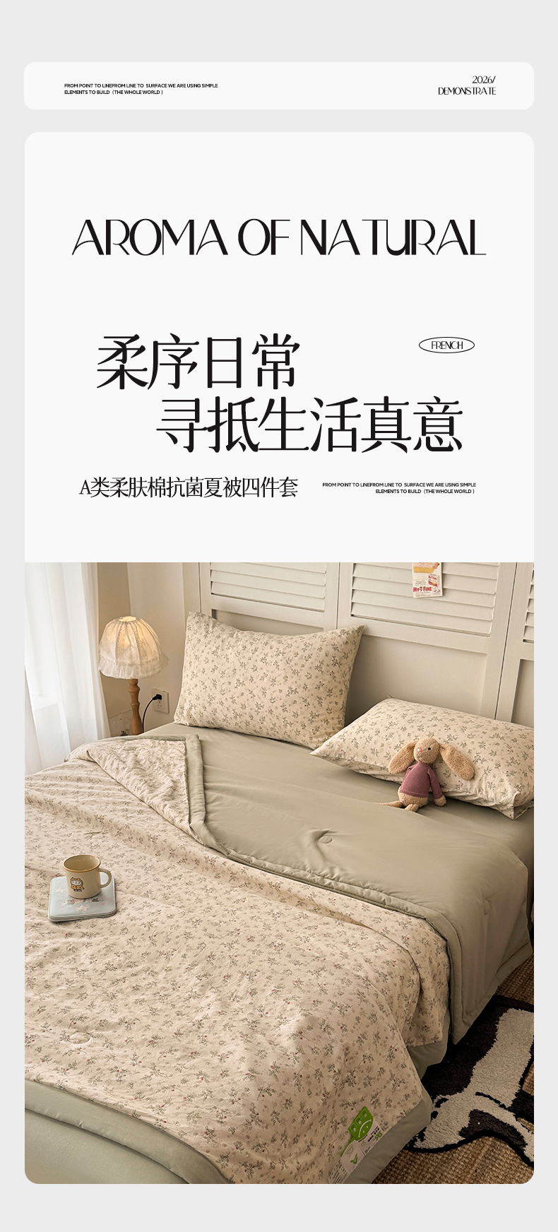 当前位置: 91家纺网 > 商品网购 > 床品套件 > 四件套 > 夏被四件套 > 盛凡家纺 2026新款小清新抗菌夏被夏凉被空调被被子被芯夏被四件套 浅夏栀眠