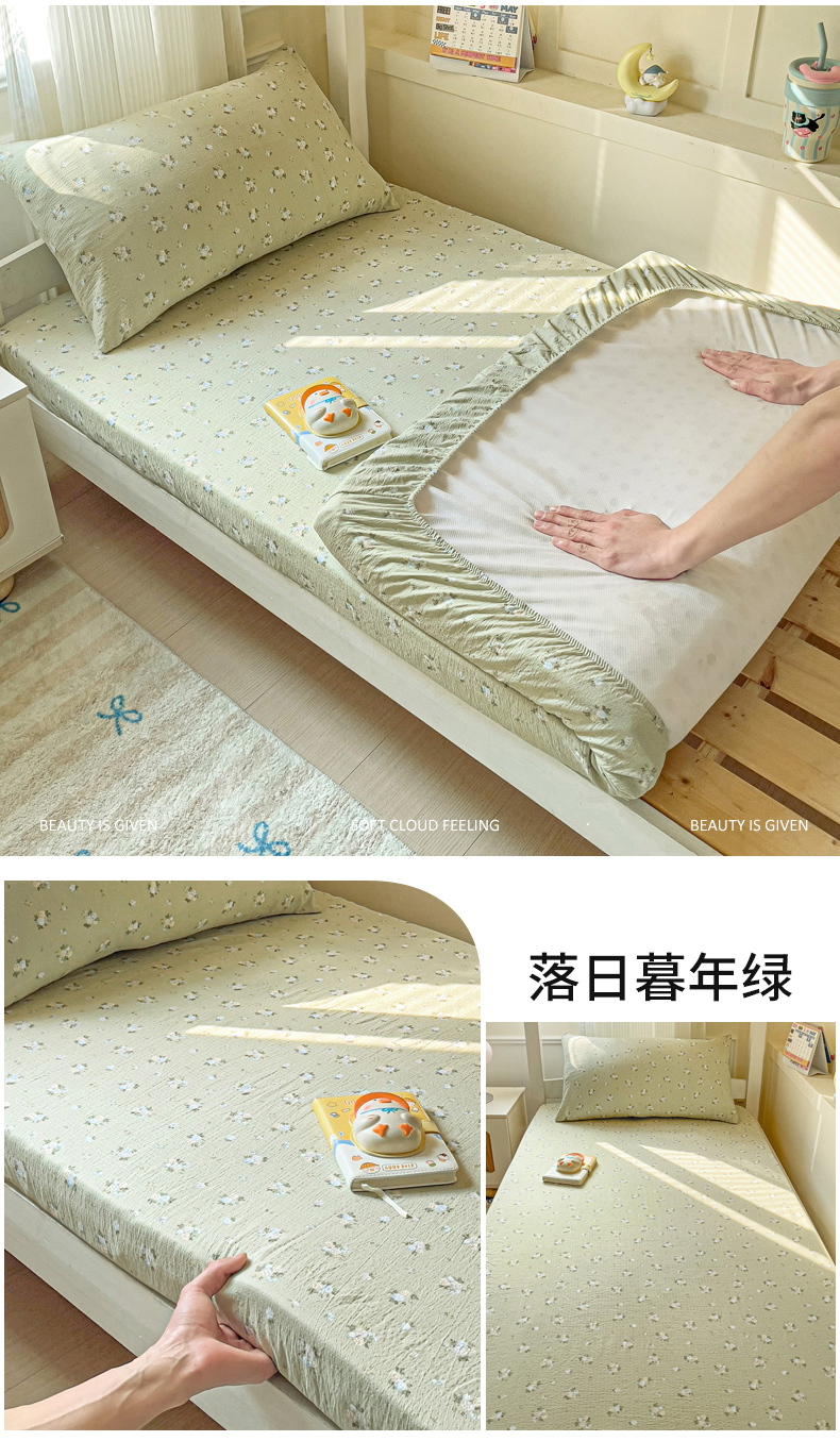 (总)纽缦家纺 2025新款纯色提花学生冰丝床笠,薄荷绿,豆绿,复古蓝,海青,麦穗黄,梦幻紫,奶茶棕,水光蓝,温雅玉,星空灰