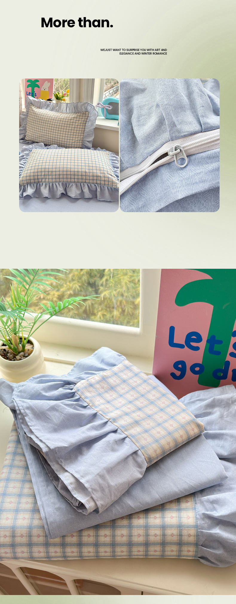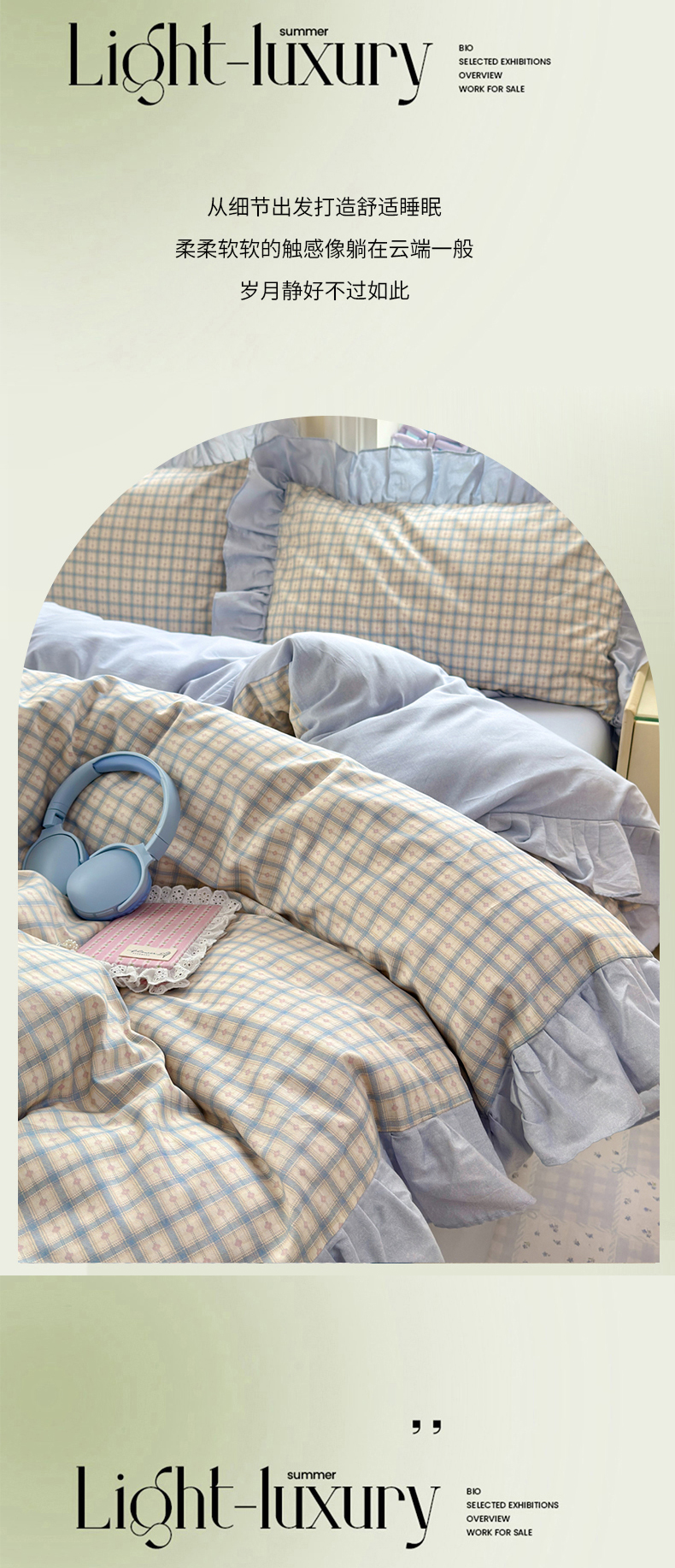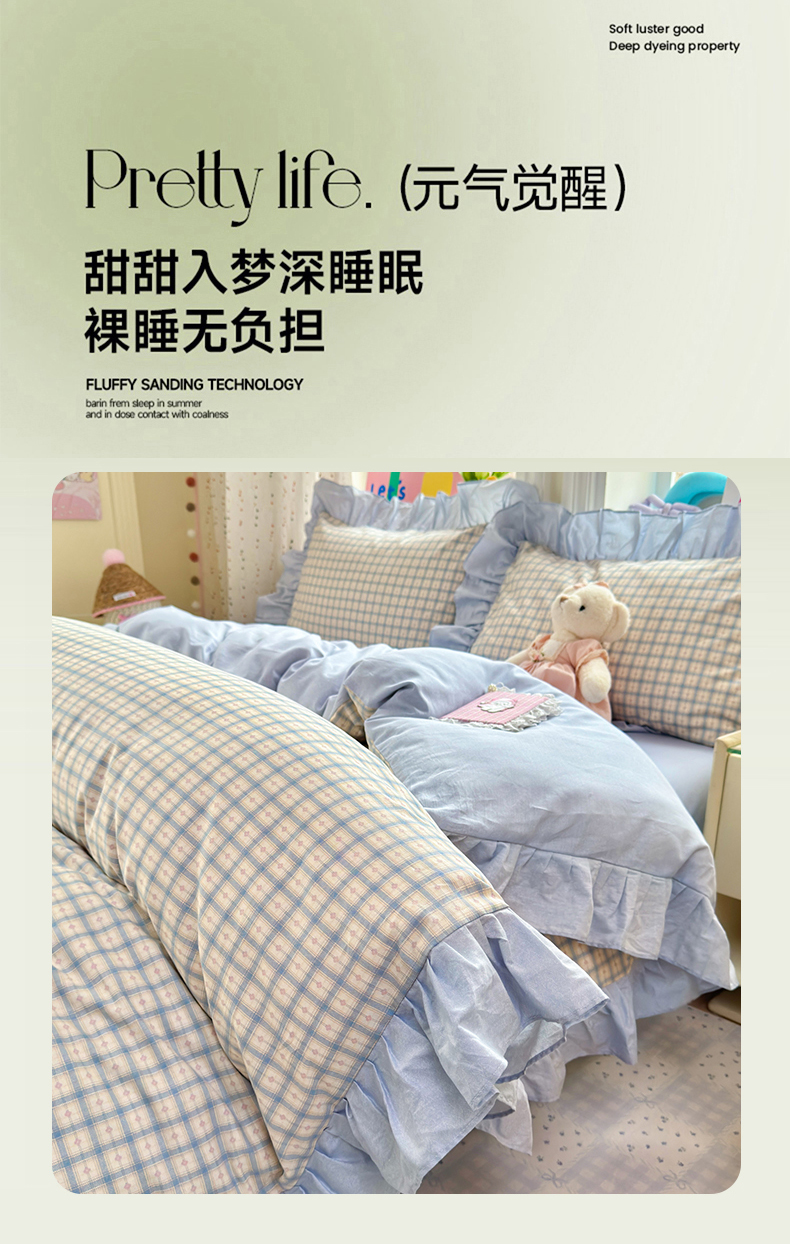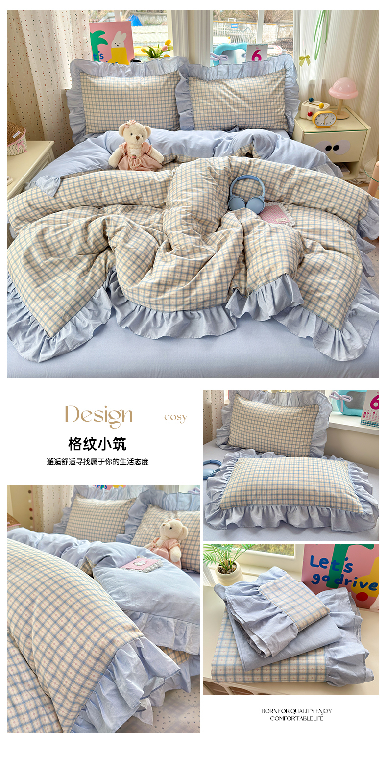(总)乐童家纺 2026新款全棉纯棉花边四件套-简约风,电梯星光,格纹小筑,坐标虹