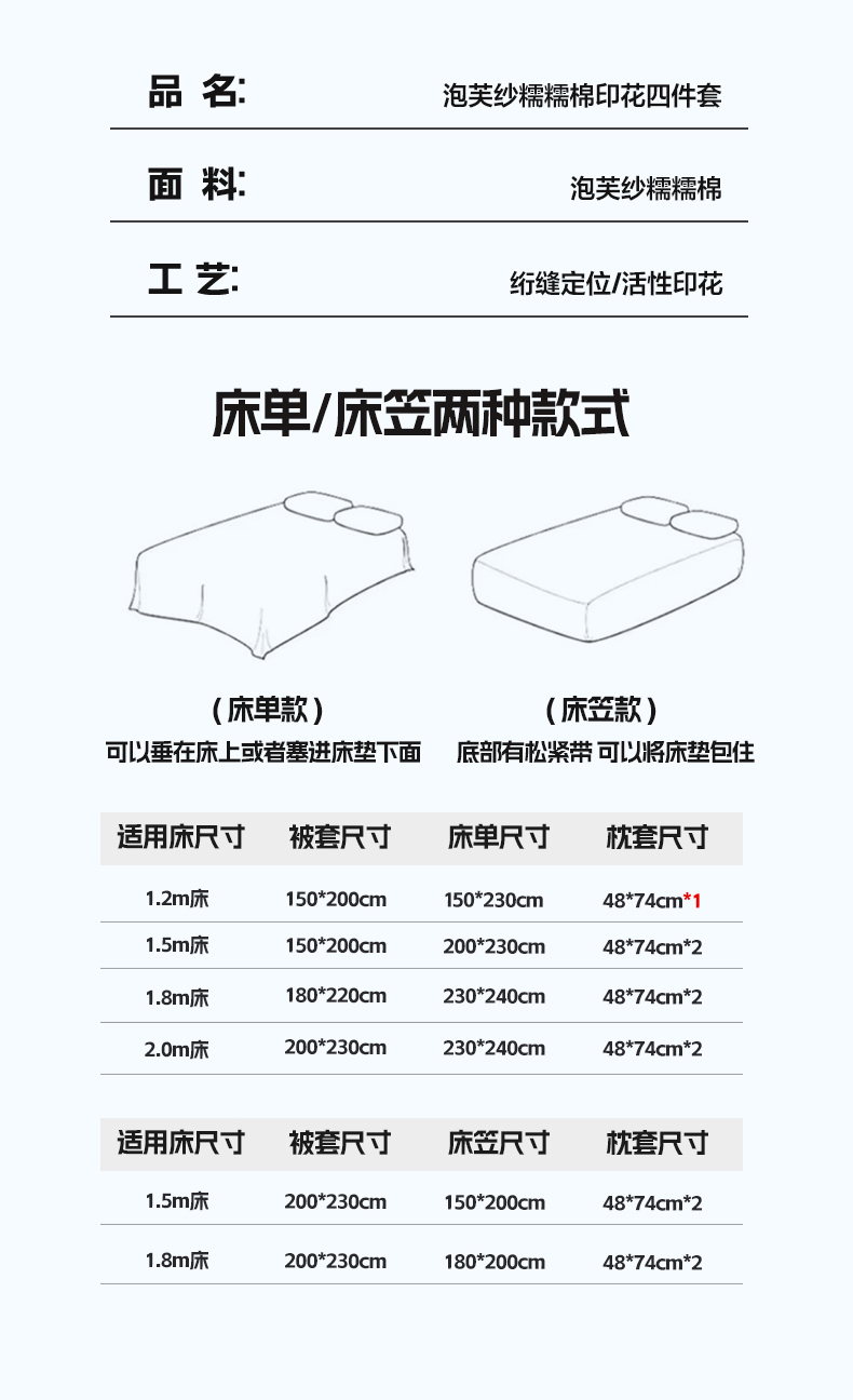 1.8米床笠款四件套被套150*200 | ¥53.00 |