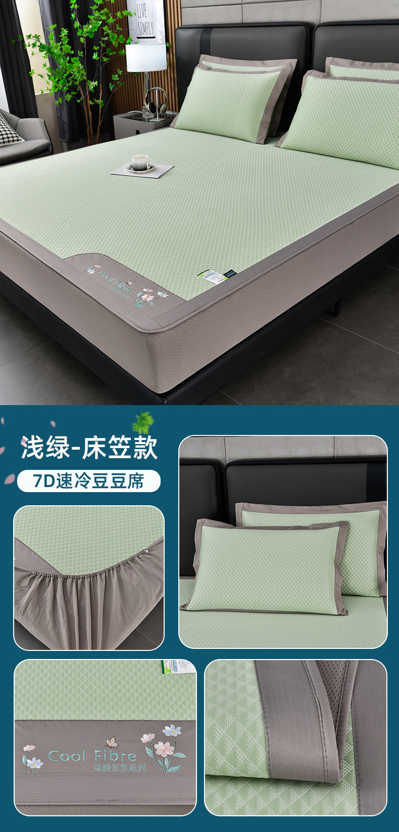 (总)小牛席业 2026春夏新款轻奢半定位凉感冰丝席凉席席子系列床笠款,轻奢半定位-粉色 床笠款,轻奢半定位-灰色 床笠款,轻奢半定位-蓝色 床笠款,轻奢半定位-抹茶 床笠款,轻奢半定位-香槟 床笠款