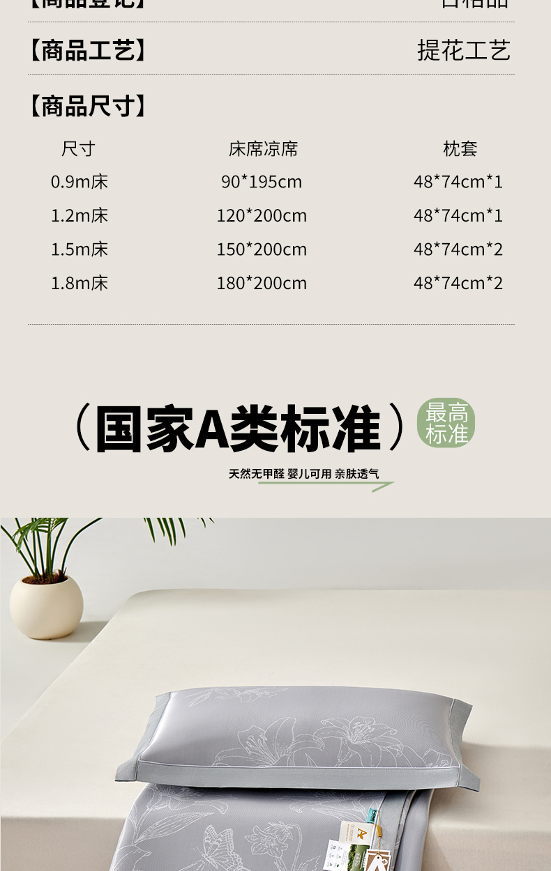 180x200cm凉席+枕套一对