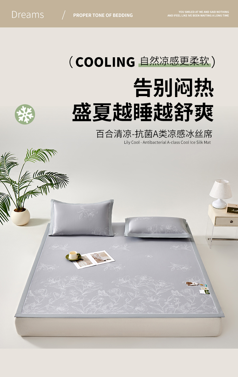 小牛席业 2026新款【实拍风格】双PE凉感-百合清凉冰丝席系列 蓝色