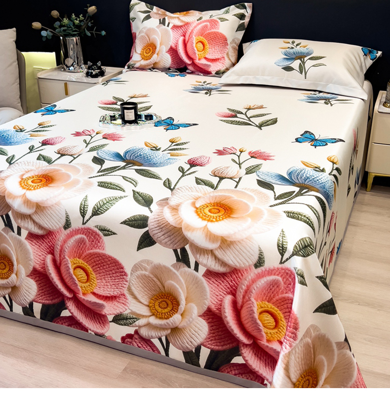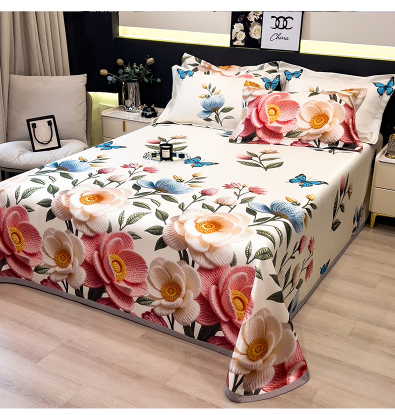 许林 2026新款冰丝凉席床单款凉席三件套 朵真,朵真