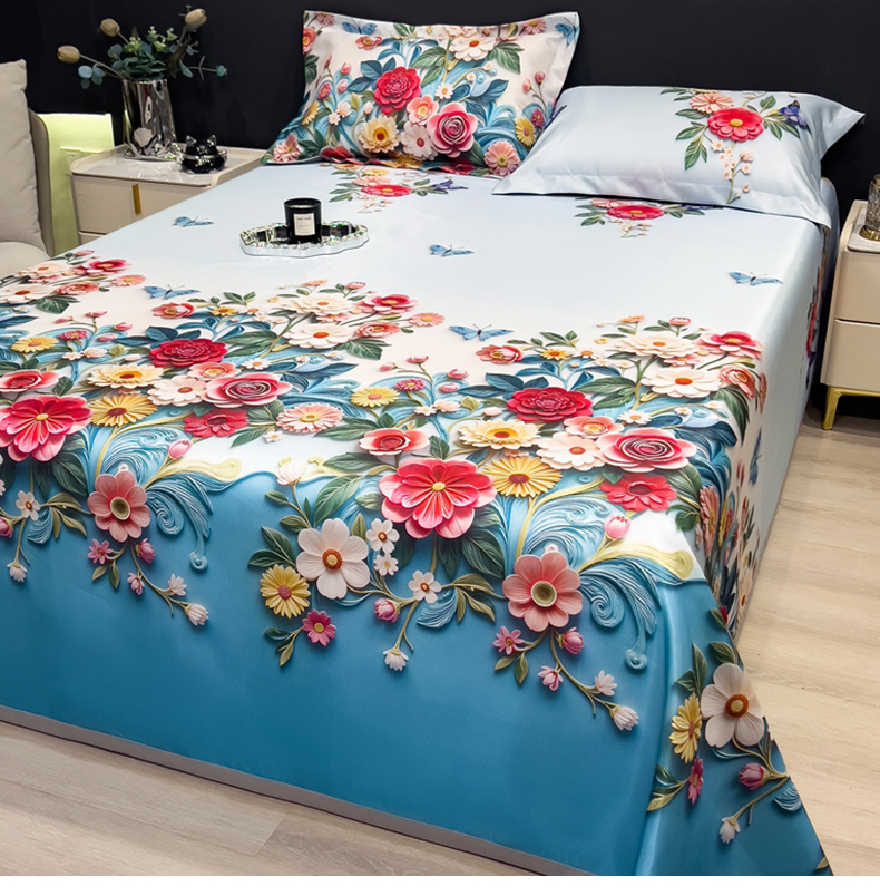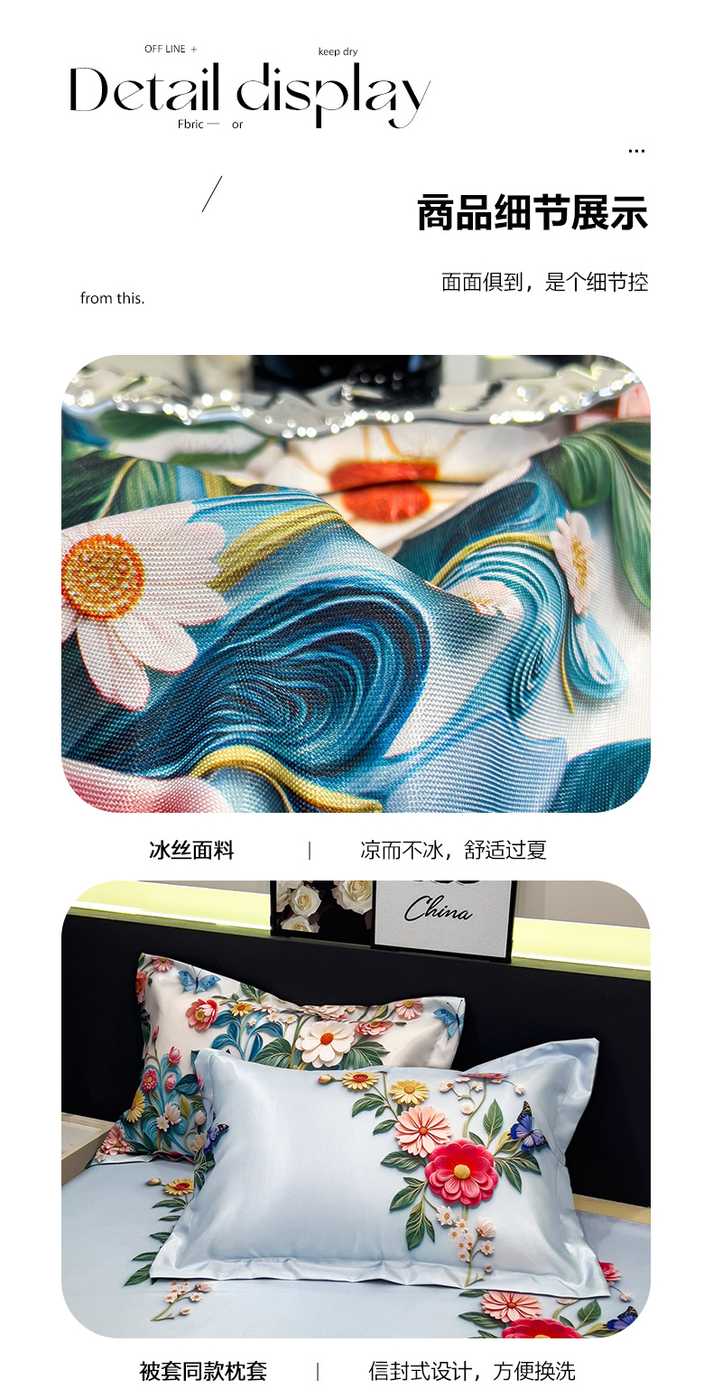(总)许林家纺 2026爆款数码印花大版高克重冰丝凉席,夏木,花楹,绿野晴风,曼陀罗,牡丹,浅朵,四季花,星空幻想,孔雀