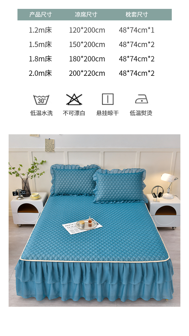 (总)畅畅家纺 2026春夏新款聚乙烯中分子凉感冰感凉豆豆凉席席子床裙三件套幸运草,幸运草-粉,幸运草-灰,幸运草-蓝,幸运草-绿