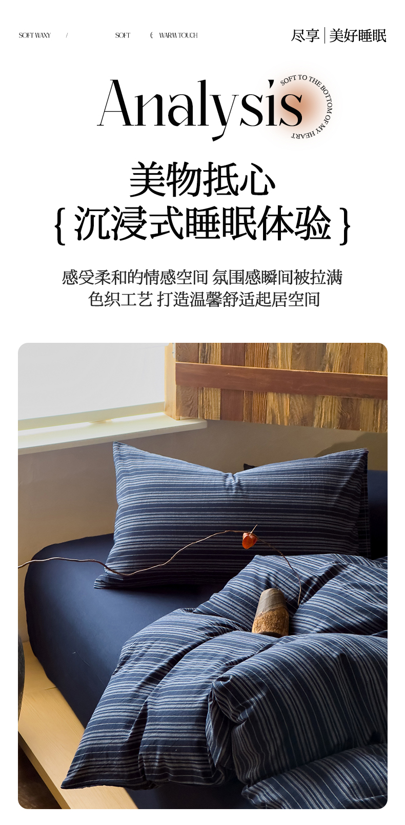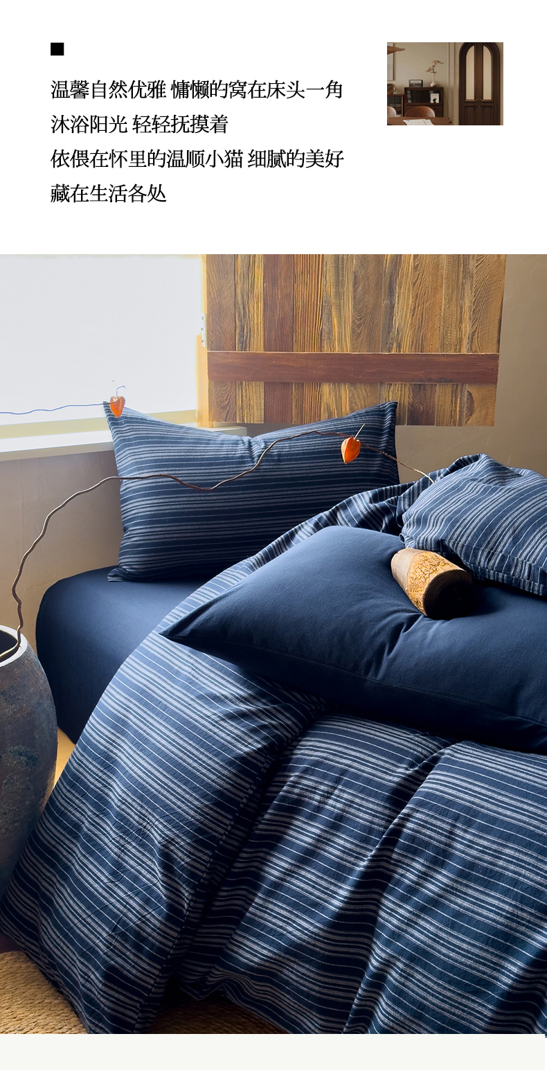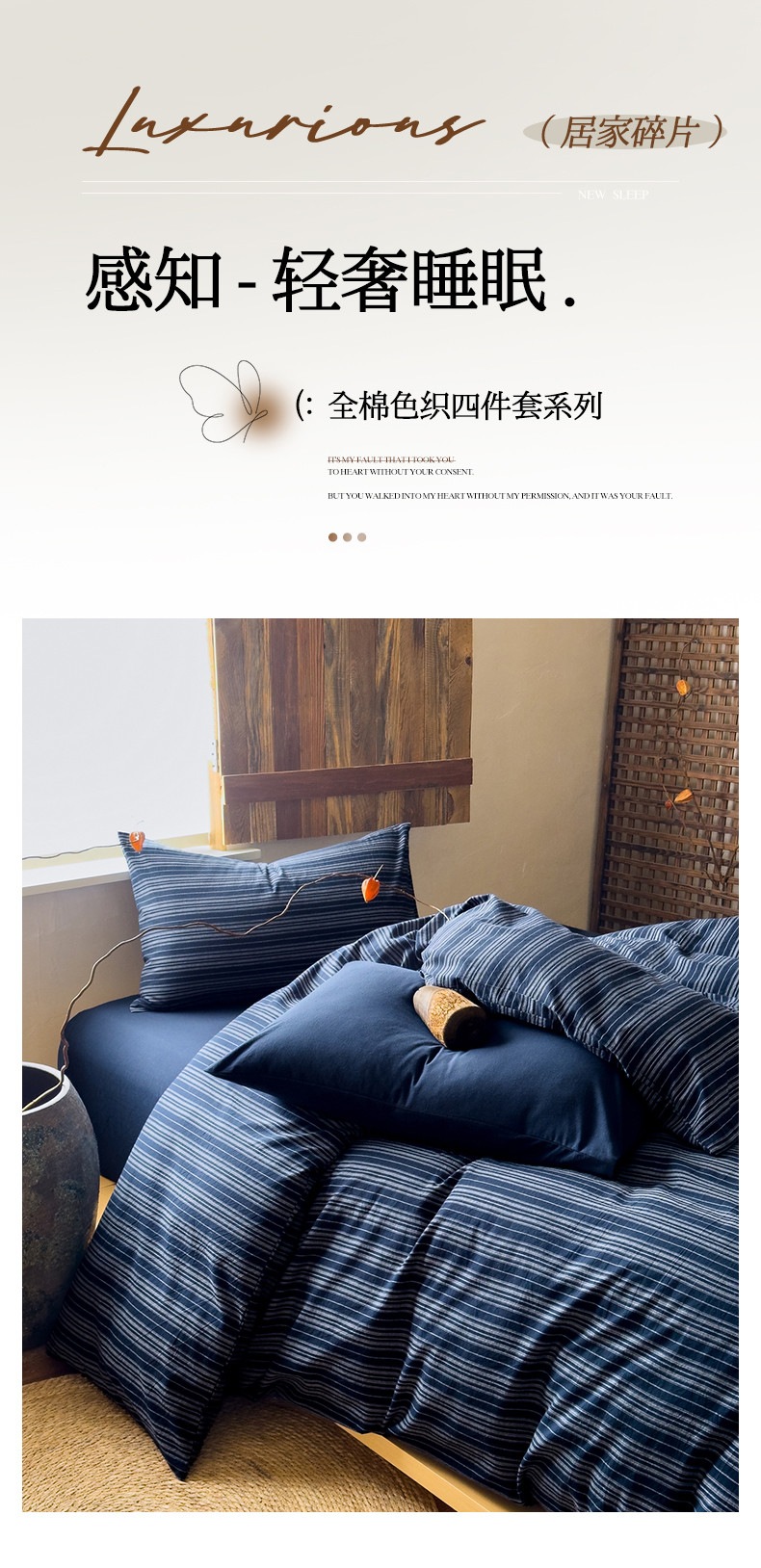 当前位置: 91家纺网 > 商品网购 > 床品套件 > 四件套 > 全棉普通四件套 > 对白 2026春夏新款专版全棉纯棉色织水洗棉四件套-极繁主义系列 极繁主义-藏青条纹+藏青