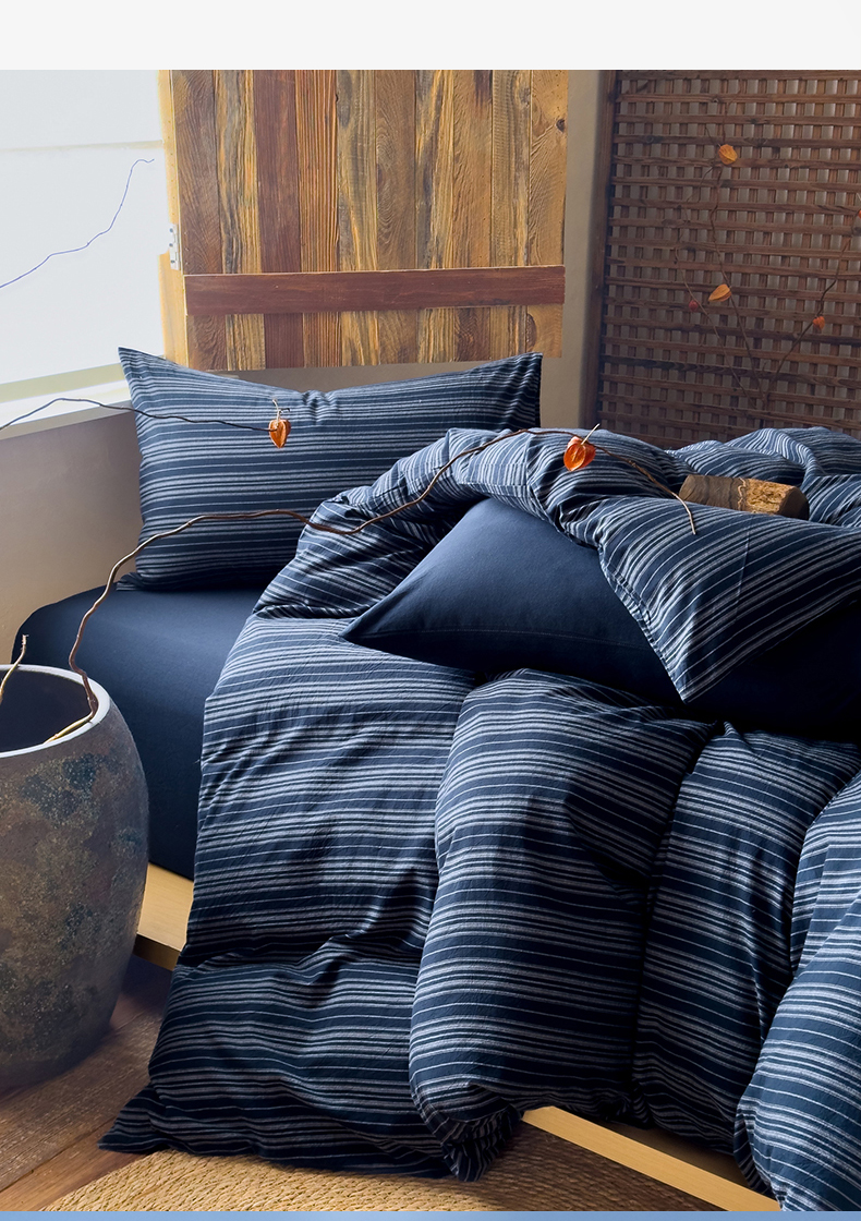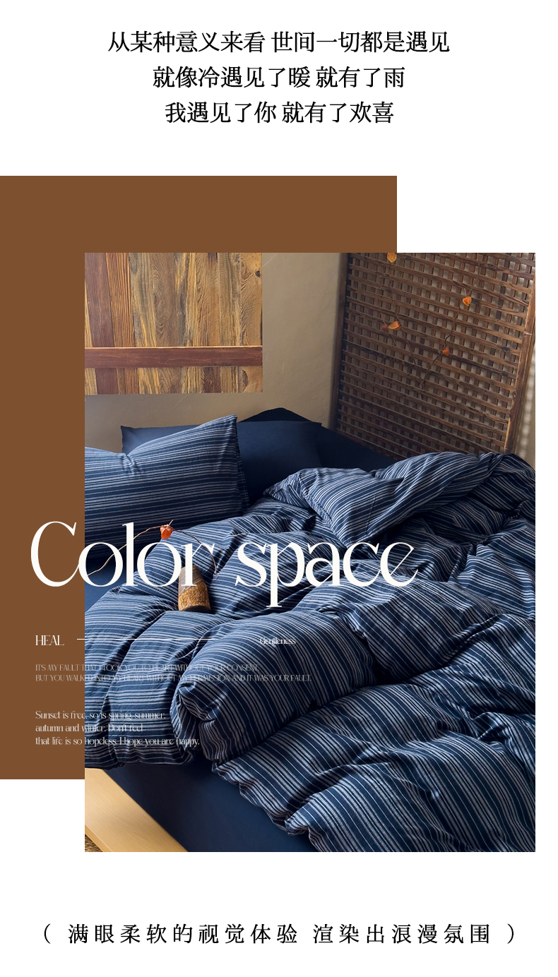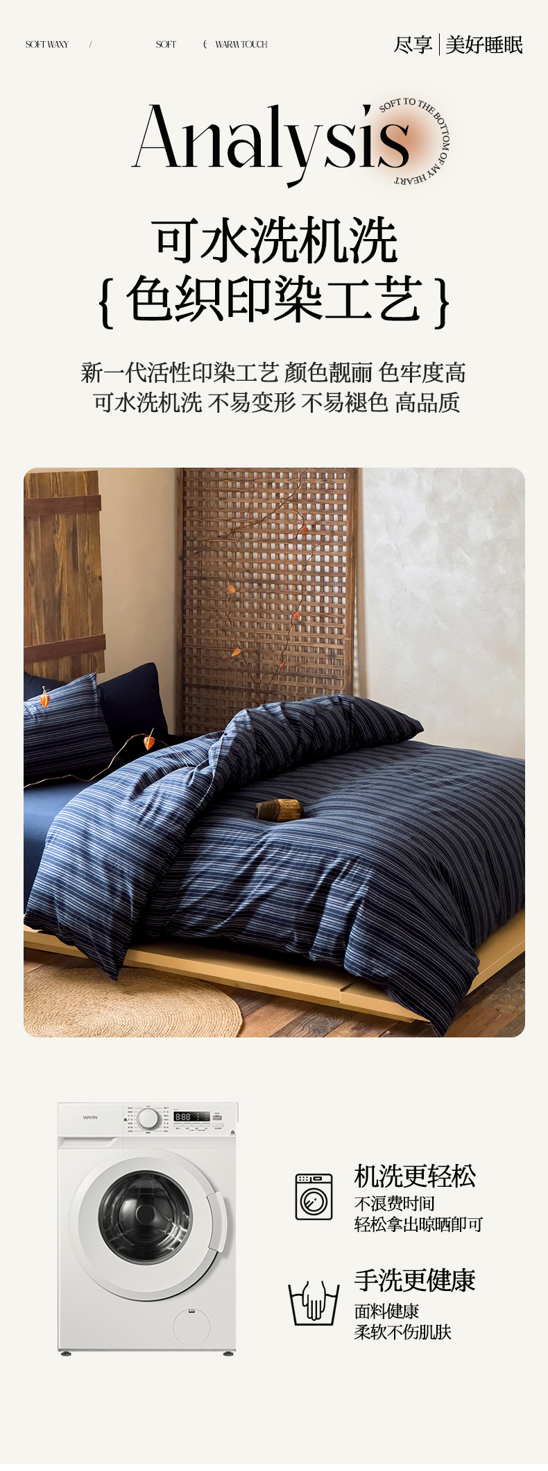 当前位置: 91家纺网 > 商品网购 > 床品套件 > 四件套 > 全棉普通四件套 > 对白 2026春夏新款专版全棉纯棉色织水洗棉四件套-极繁主义系列 极繁主义-藏青条纹+藏青