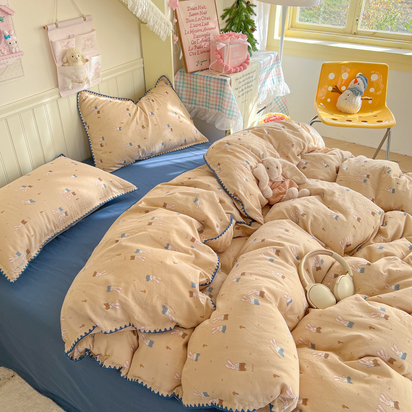 当前位置: 91家纺网 > 商品网购 > 床品套件 > 四件套 > 全棉普通四件套 > 金丝鸟家纺 2026新款全棉纯棉双层纱贝壳边款四件套 花镜布偶