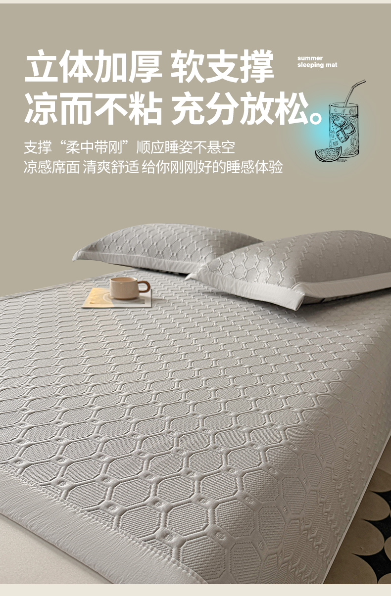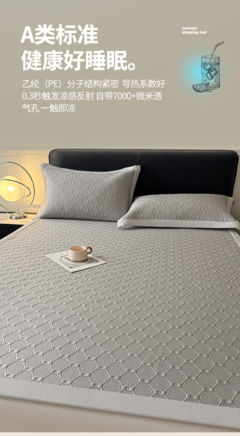 商品名称:玉相逢 2026新款立体刺绣乙纶夏凉凉席-蝶韵-床席款 菱格 冰浅灰