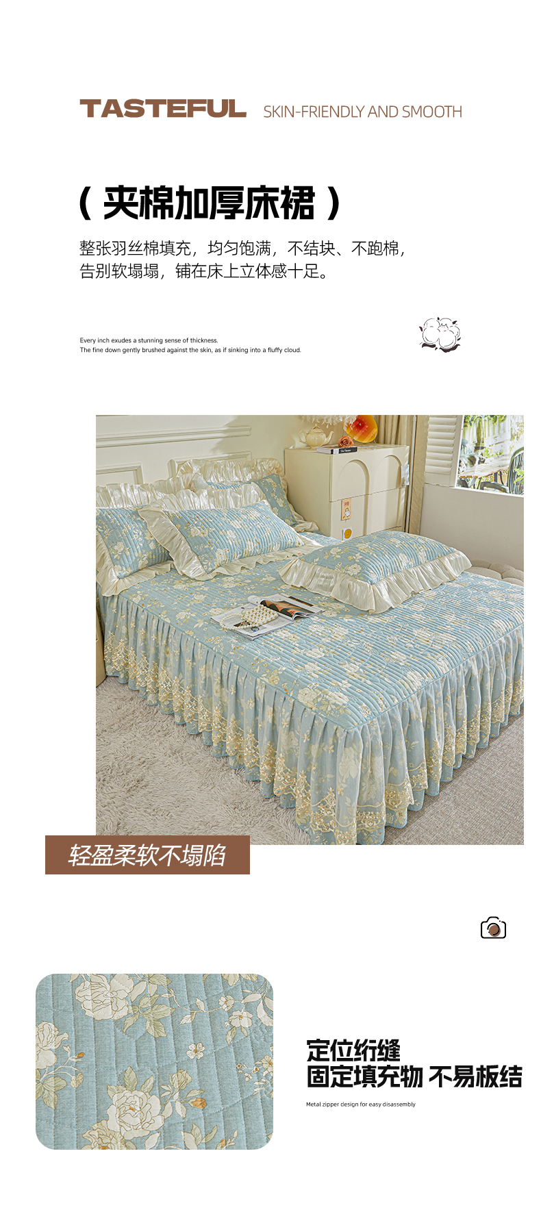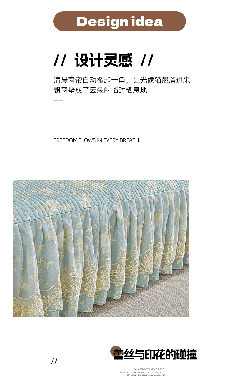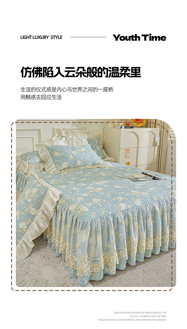 (总)宜凡家纺 2026新款全棉法式夹棉床裙款三件套,尘世浮华,春日微光,花黛织梦,曼妙花香,晴空,寻觅花季