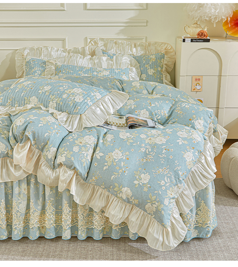 (总)宜凡家纺 2026新款全棉印花法式夹棉床裙四件套