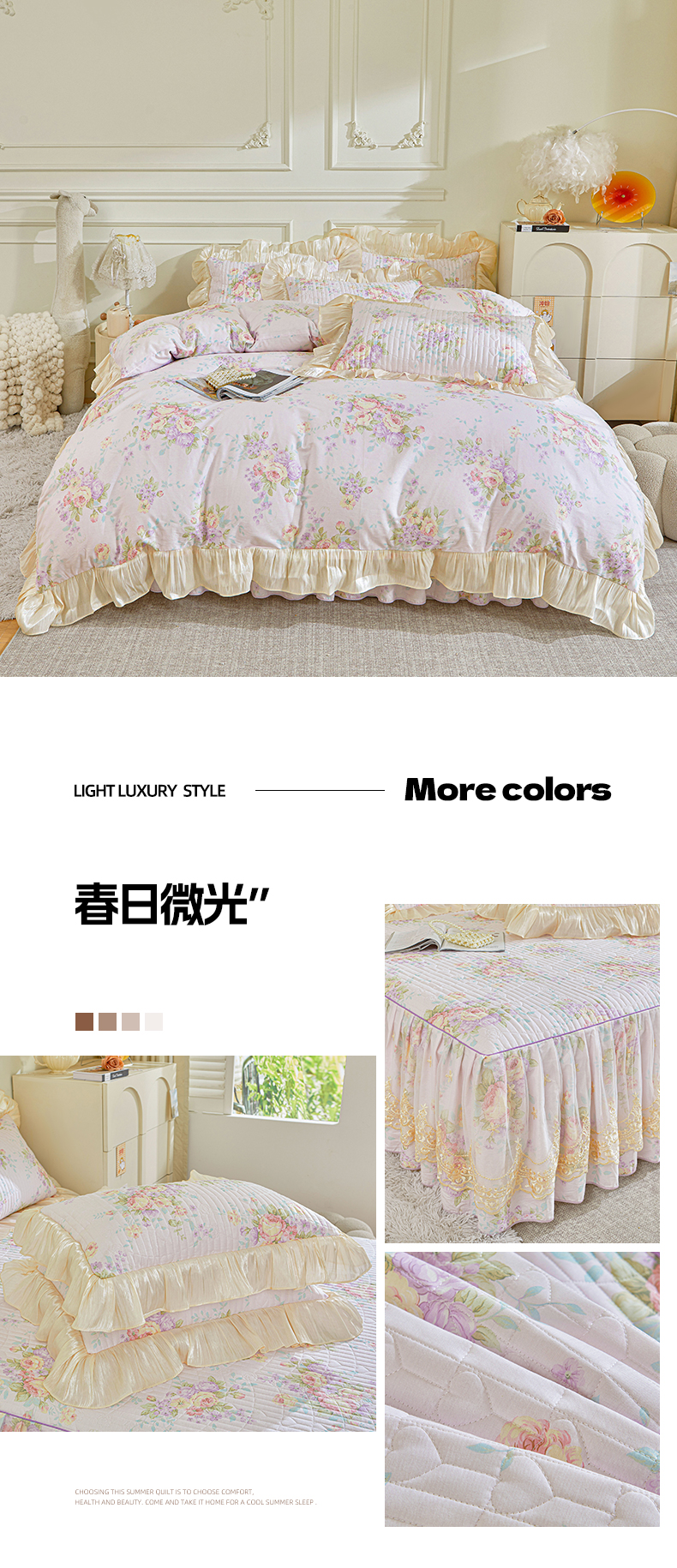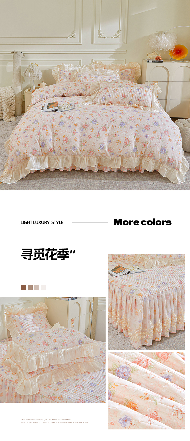 (总)宜凡家纺 2026新款全棉印花公主风夹棉床盖四件套,逐梦,假日,可颂,梦娜,木槿,乔屿