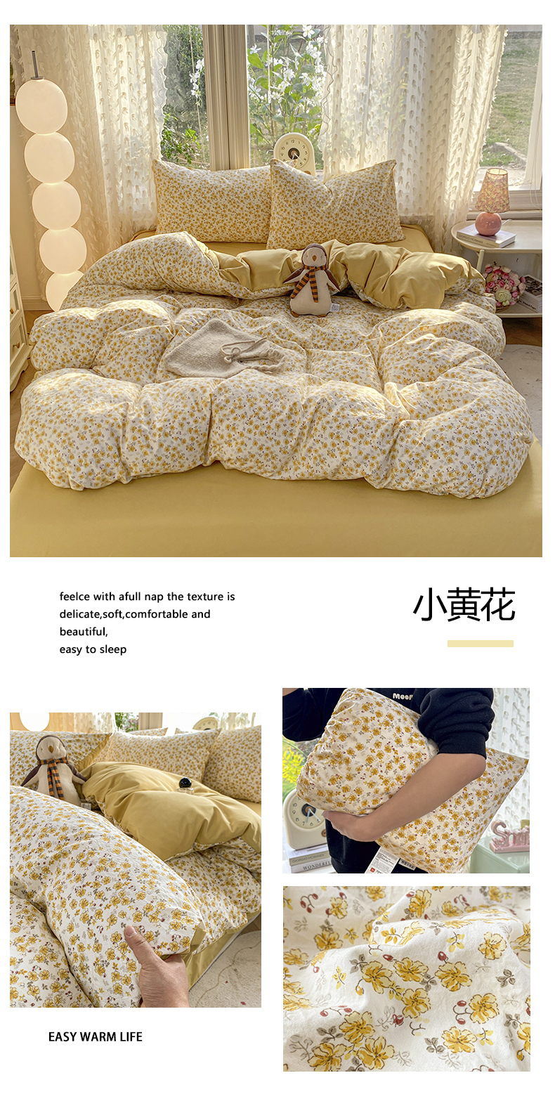 (总)豫见家纺 2026新款古法水洗仿棉云感纱四件套,小鱼心事,爱心格纹,安妮碎花,豹纹咖,彩波波,彩心心,草莓点点,晨露,初夏,梵高映像,乖巧KT-粉,乖巧KT-蓝,赫莲娜,灰条樱桃,吉米兔-灰,吉米兔-紫,浆果,兰枝玉树,梦屿,秘密花园,蜜恋樱桃,木马乐园,南瓜派,千野合,甜心乐园,晚安小星星,夏日初恋,小黄花,小猫钓鱼,小幸福,樱川桃井,知秋