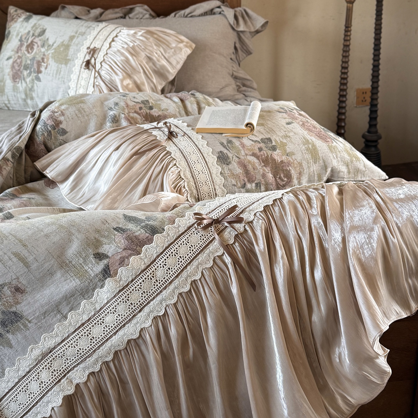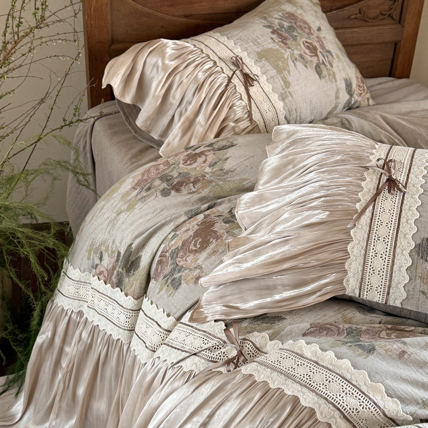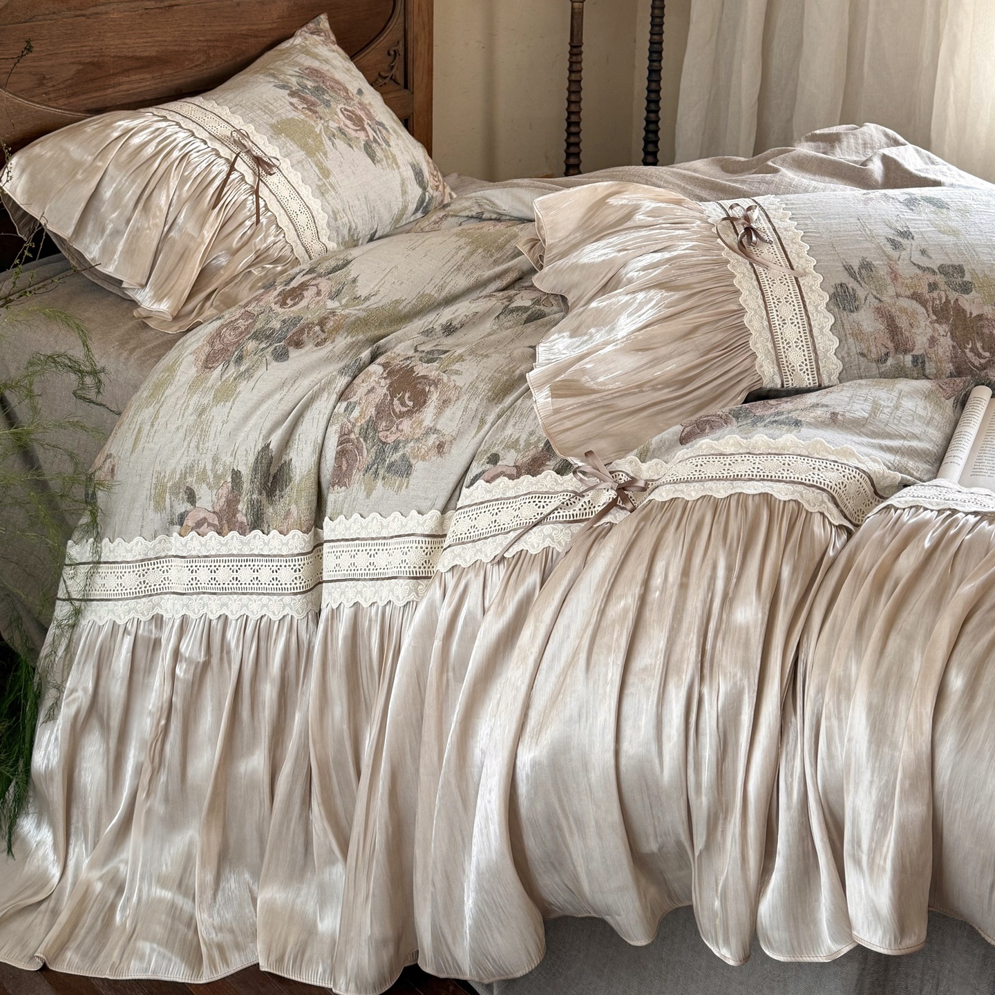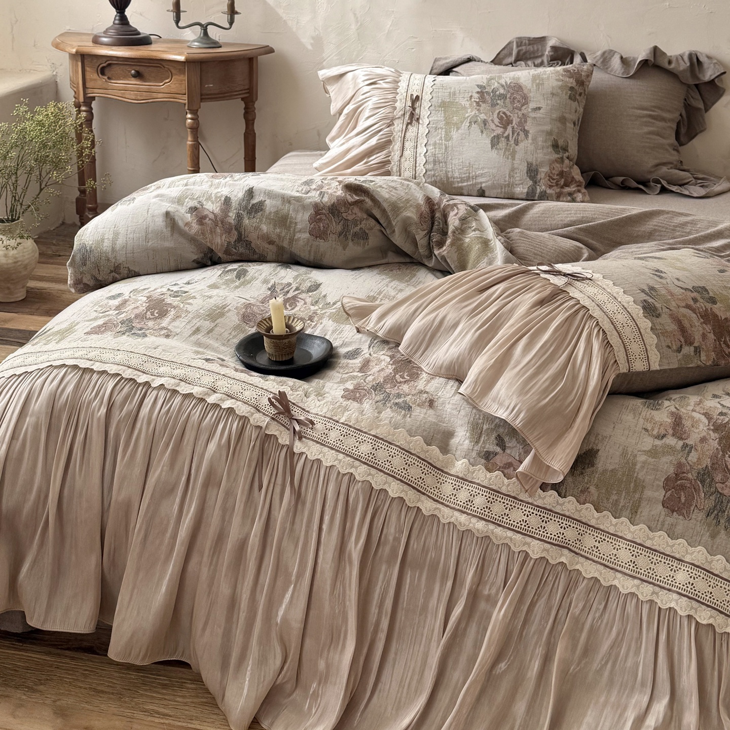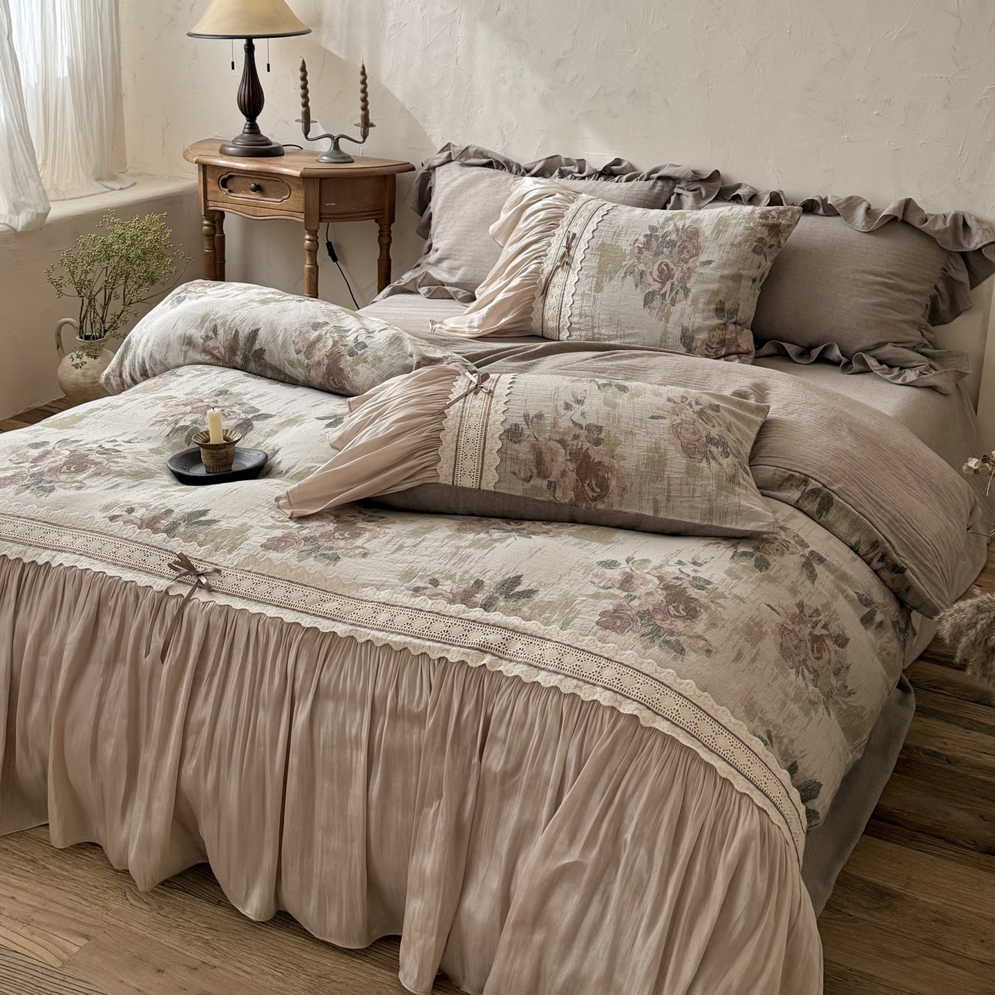 (总)佳汐蓝家纺 2026新款复古棉麻印花法式花边四件套-花未眠(控价:卷后不低于398元)