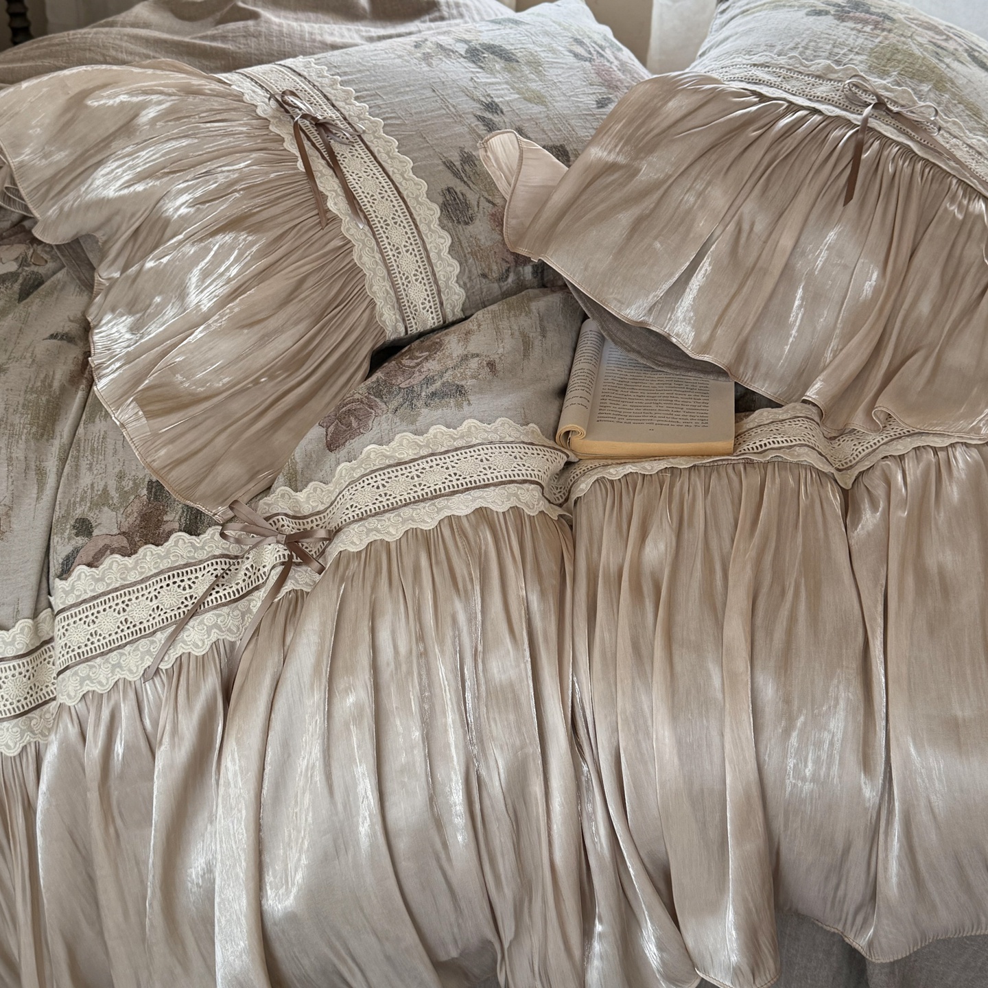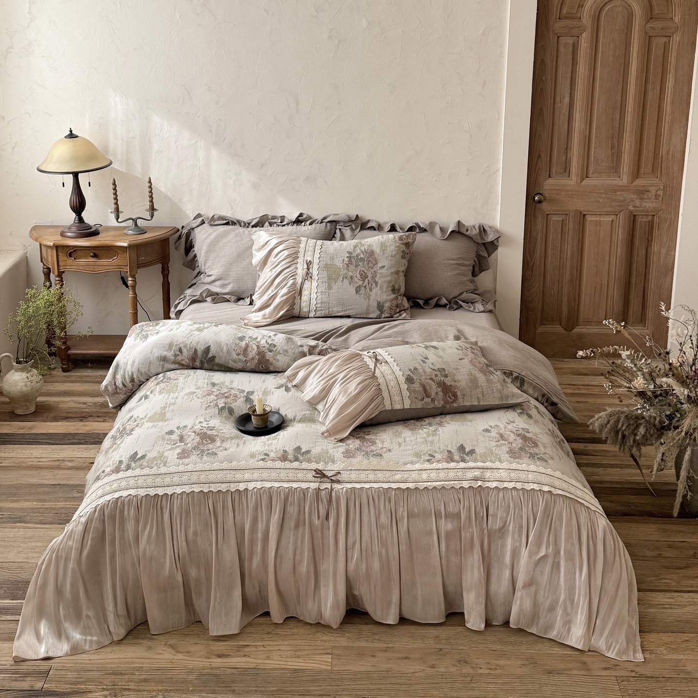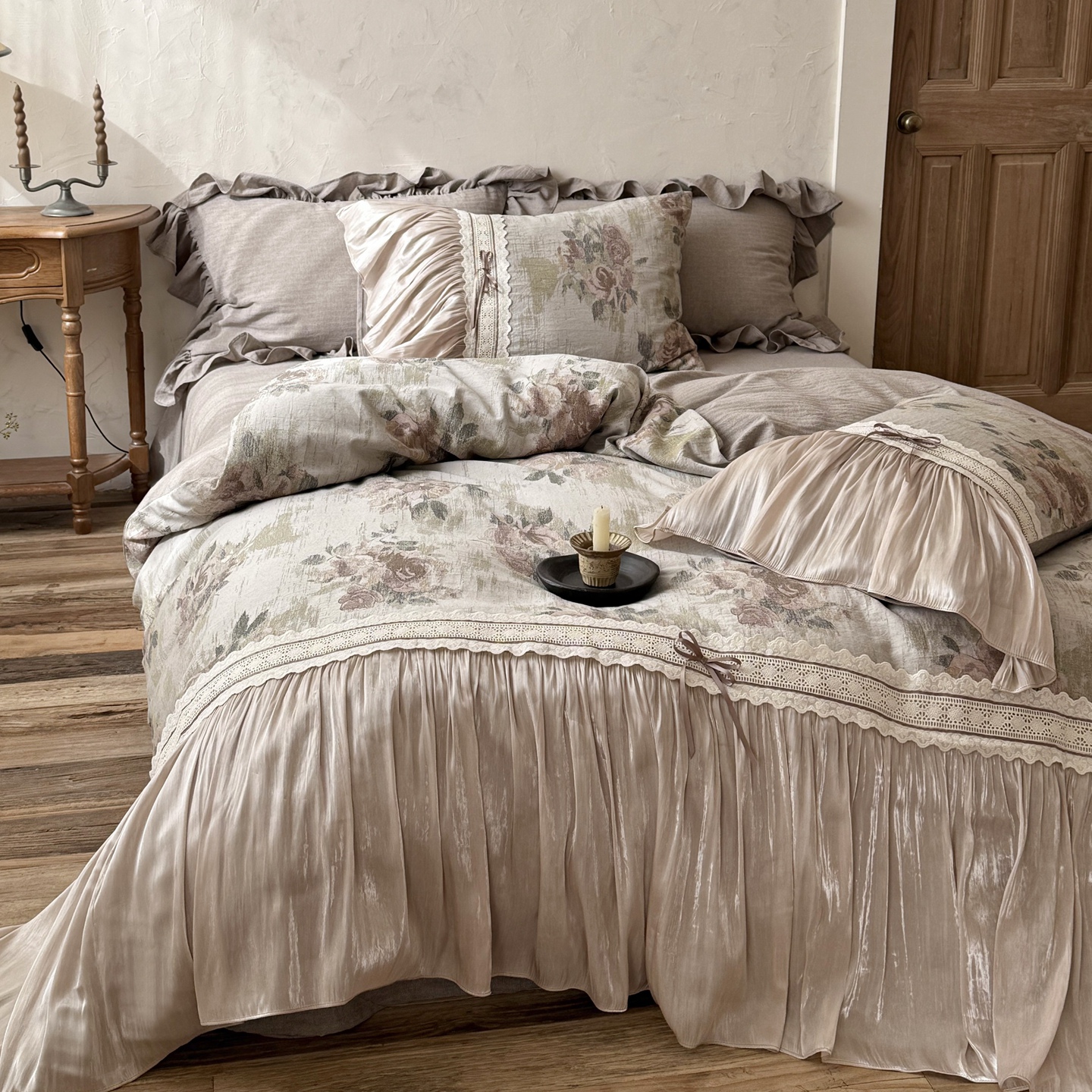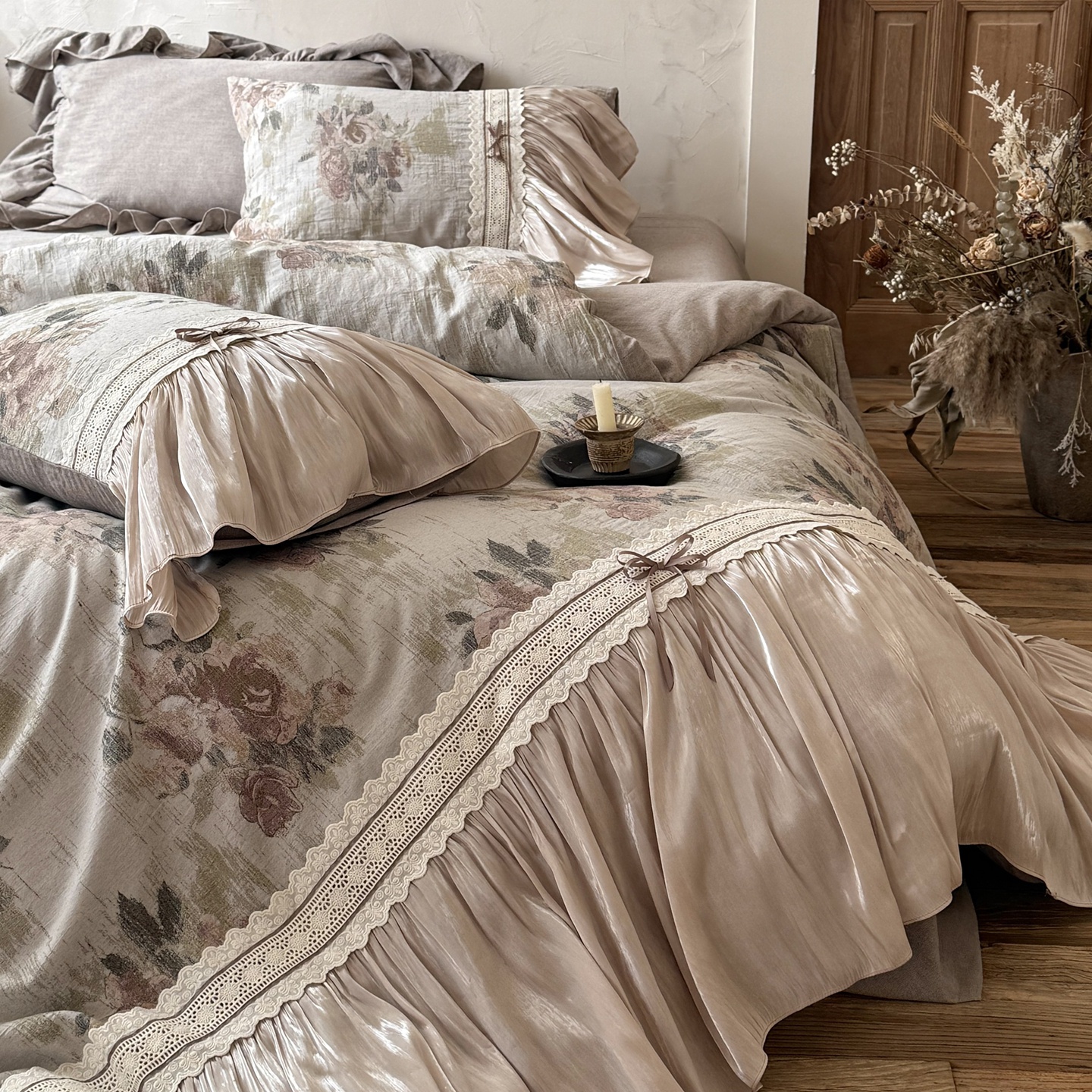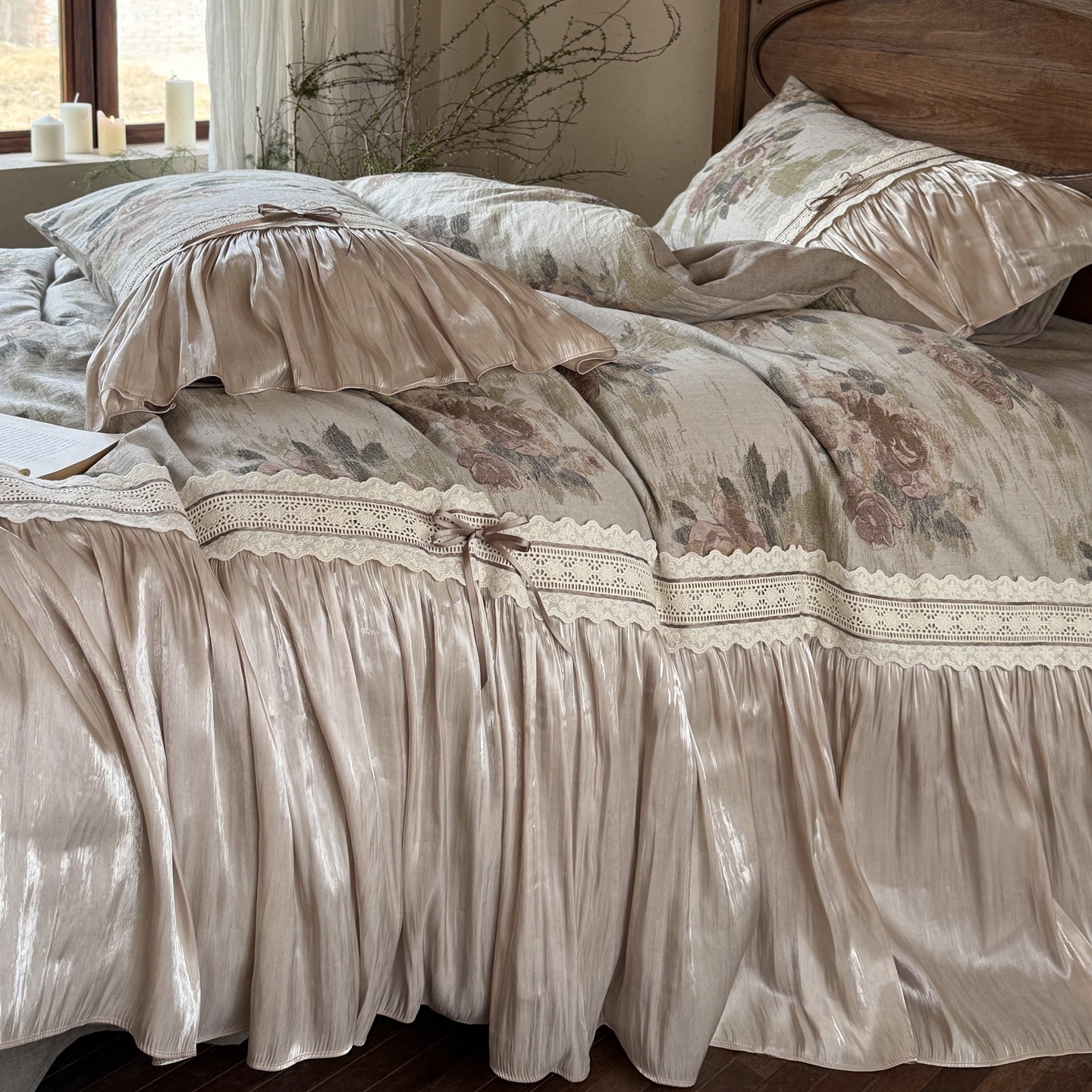 (总)佳汐蓝家纺 2026新款复古棉麻印花法式花边四件套-花未眠(控价:卷后不低于398元)