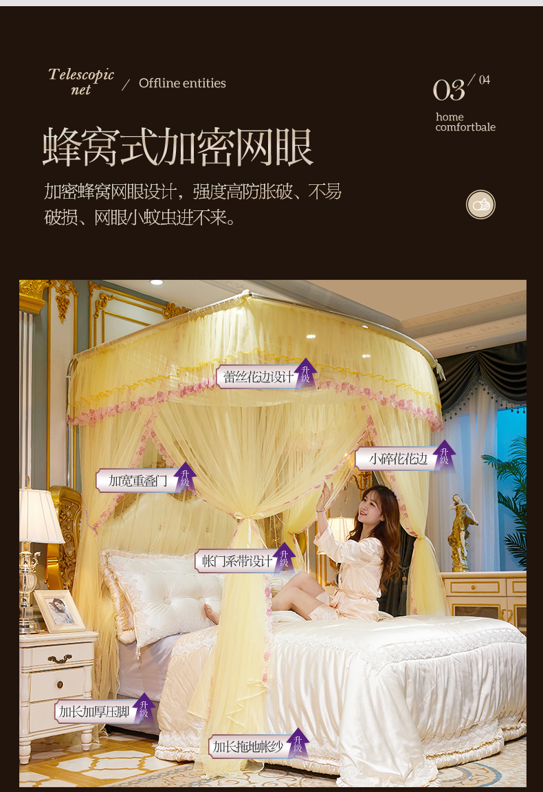 (总)舞夜盛世 【欧式风情】2026新款落地三开门宫廷蚊帐,欧式情怀-黄色,欧式情怀-灰色,欧式情怀-玉色,欧式情怀-紫色