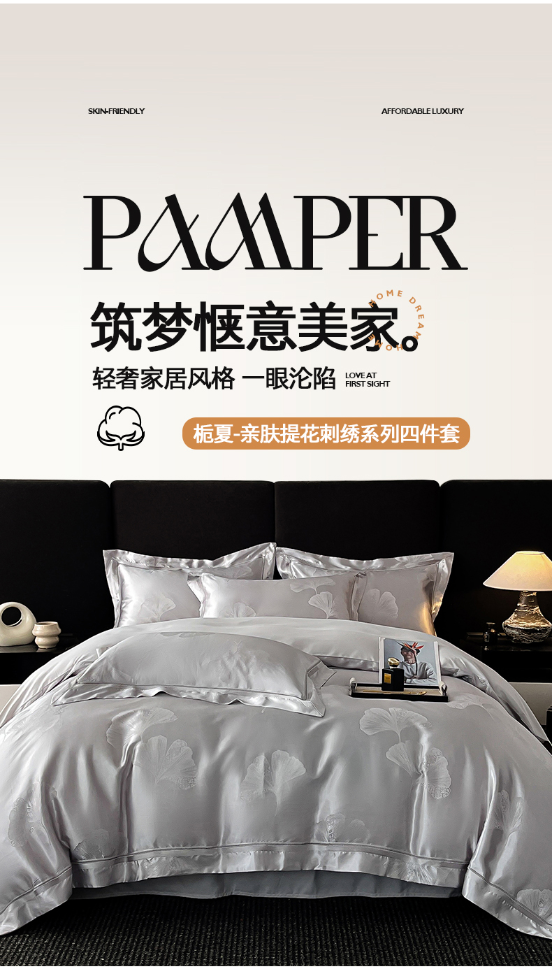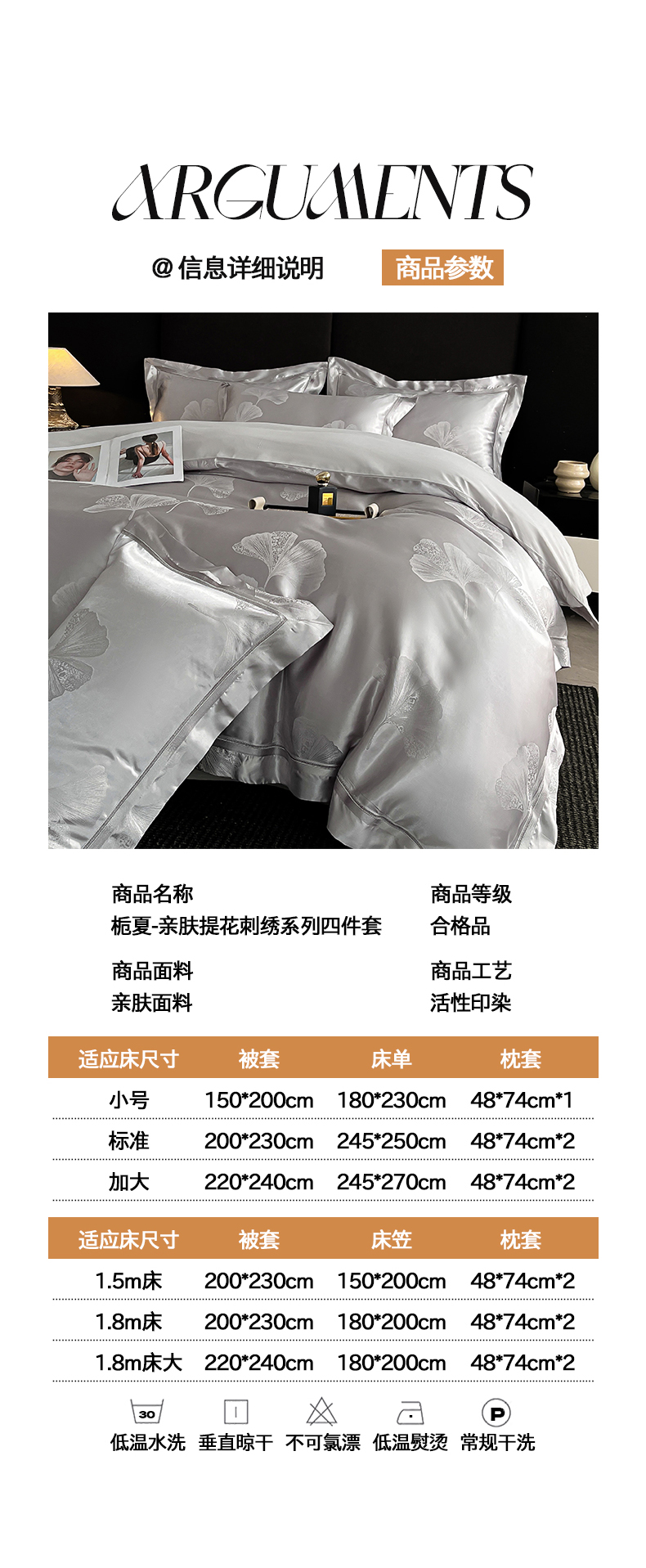 当前位置: 91家纺网 > 商品网购 > 床品套件 > 四件套 > 其它四件套 > 置顶家纺 2026新款栀夏银杏叶亲肤提花刺绣四件套 栀夏-浅灰