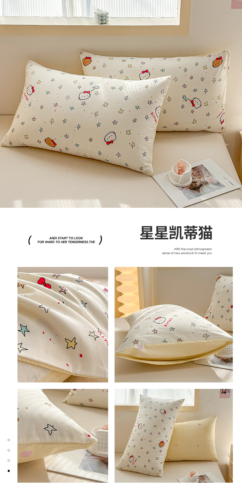 小蓝孩家纺 2026新款12868全棉单人信封枕套(联系商家可打折,尺寸可定制) 星星凯蒂猫