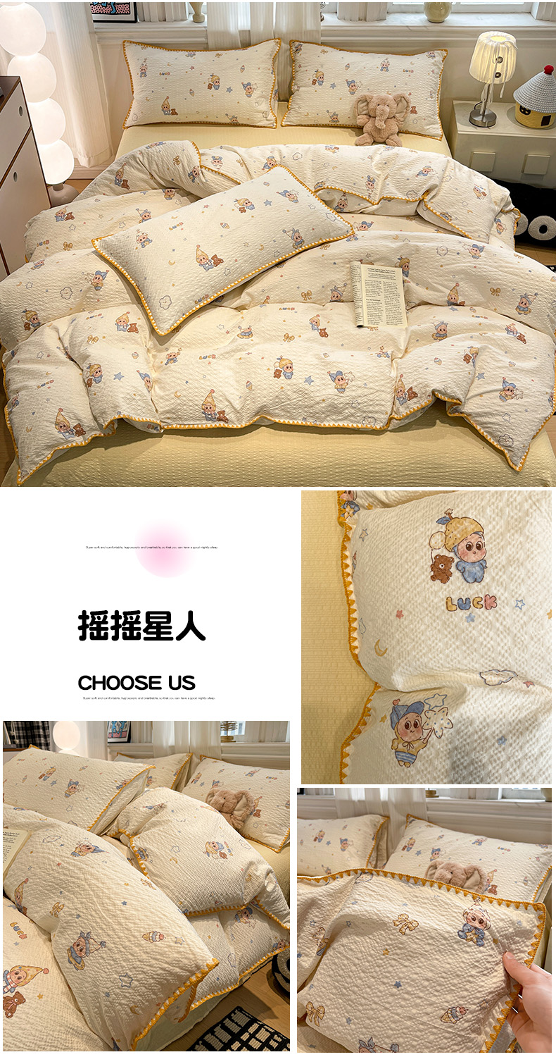仟网汇 2026新款云感泡芙棉小清新印花贝壳边四件套 蛋糕星人