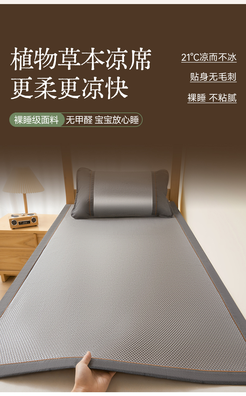 当前位置: 91家纺网 > 商品网购 > 床上用品 > 凉席 > 冰丝席 > 绒艺席业 2026新款A类双面冰藤学生凉席-光板 光板灰