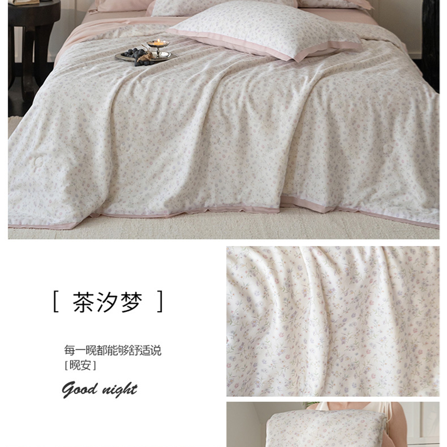 (总)黛舒家居 2026年春夏款80S天丝夏被夏被四件套,碧涧清岚,花漾浅梦,浅绿蔓影,青雾凝香,雾紫蝶影,云屿晨纱