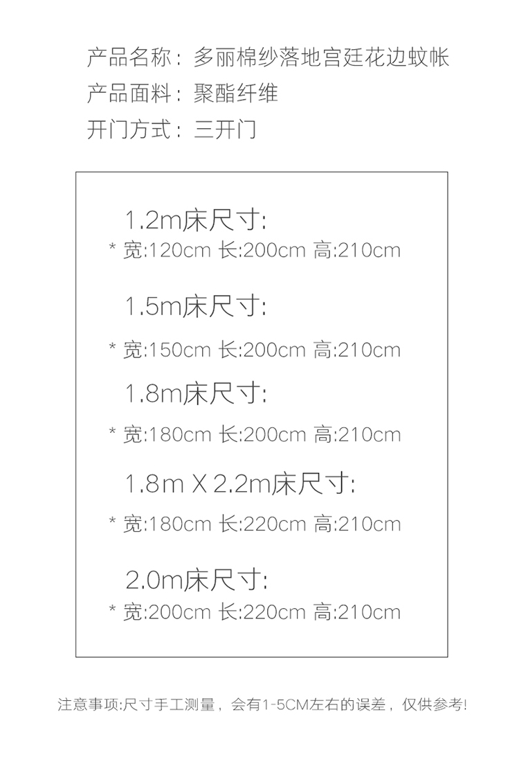 商品名称:(总)都市缘蚊帐 2026新款浪漫905多丽棉纱落地宫廷蚊帐