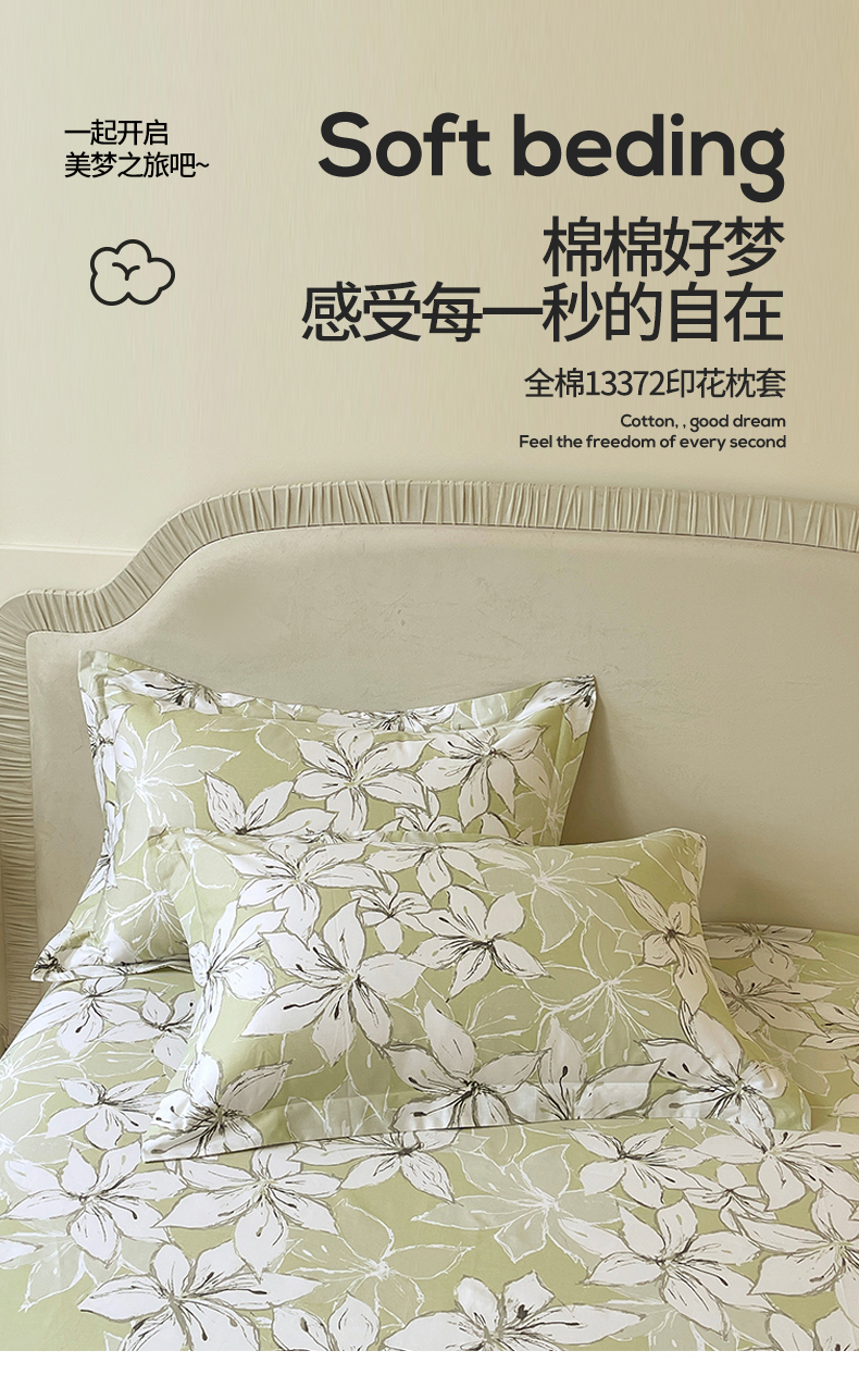 (总)宝齐莱家纺 2026新款全棉纯棉13372印花单枕套枕套单件,浮光花影,花解语,洛可可,美如画,浅茉,清雅,午后花园,香榭丽,小确幸,烟花间,云间月,左岸晨雾