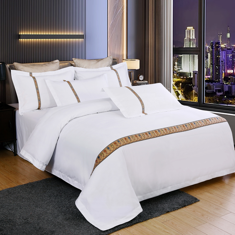 当前位置: 91家纺网 > 商品网购 > 床品套件 > 四件套 > 化纤活性四件套 > 好杰 2026新款加厚加密酒店布草织带四件套 花开富贵-绿