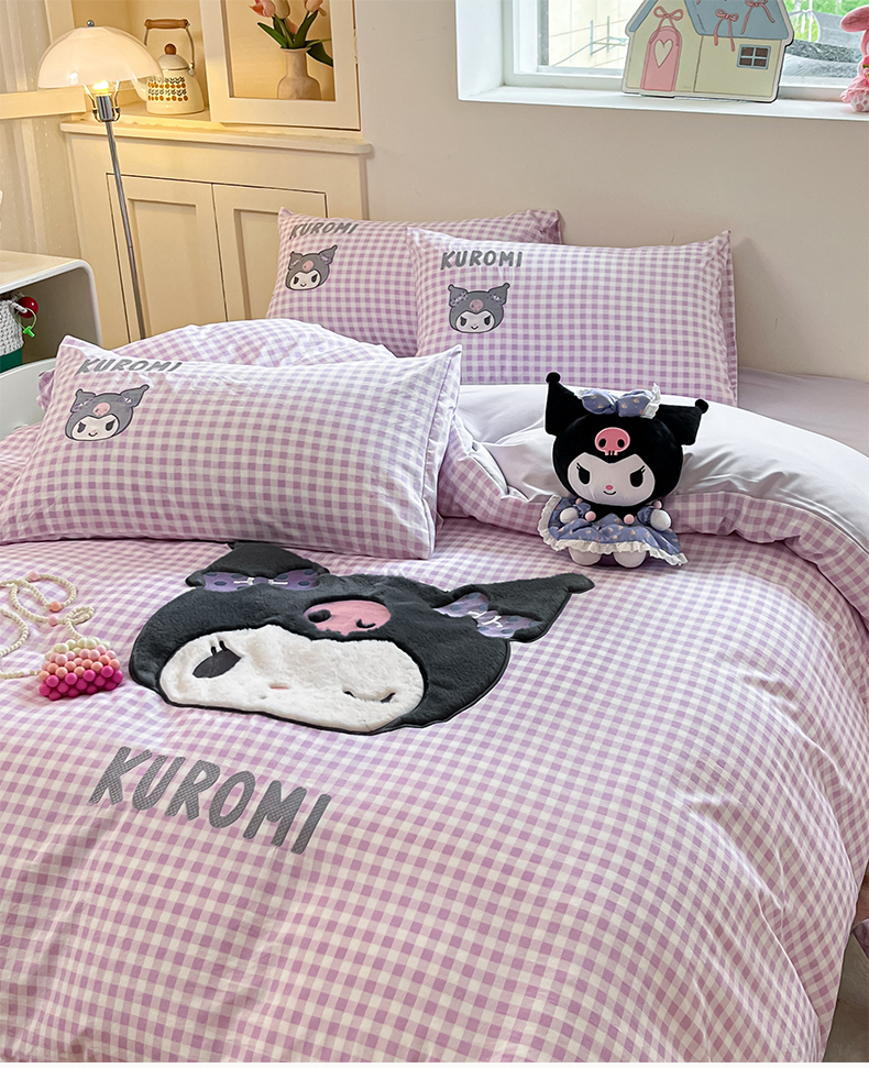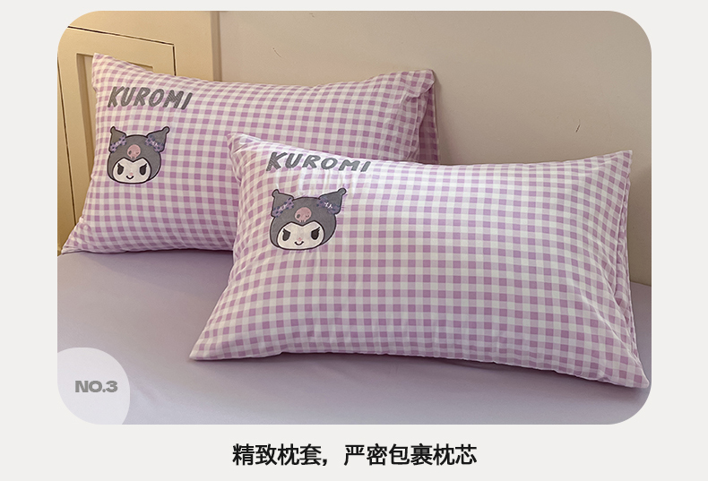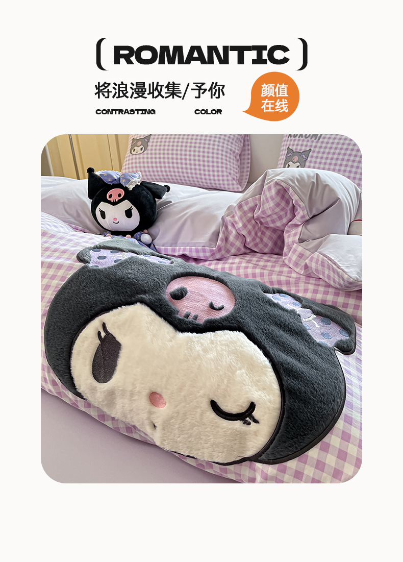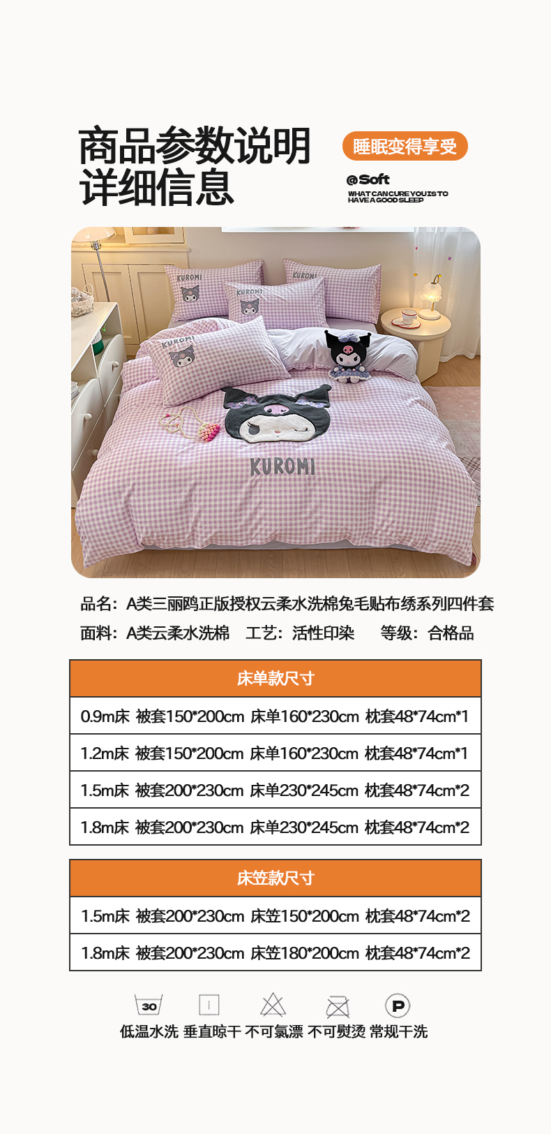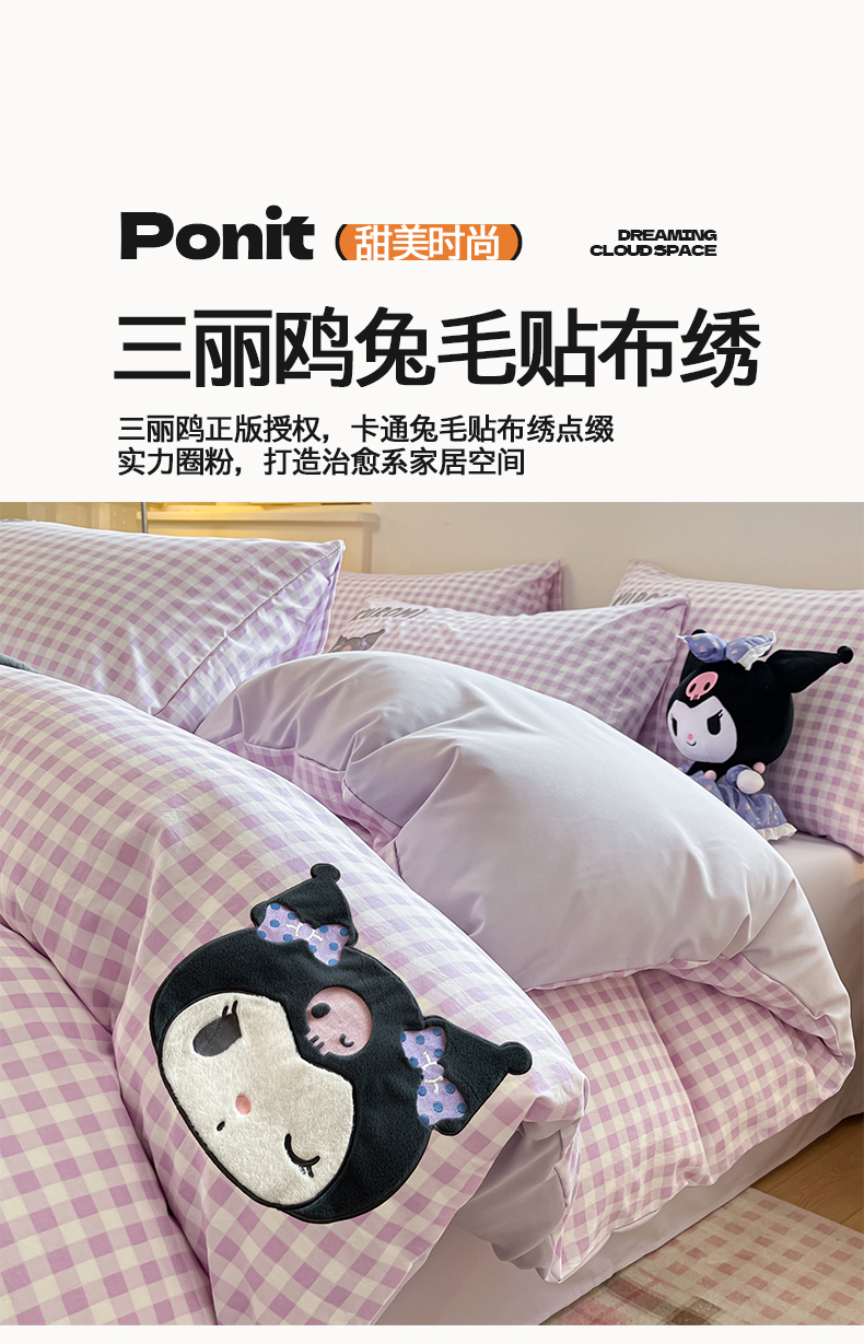 当前位置: 91家纺网 > 商品网购 > 床品套件 > 四件套 > 水洗棉四件套 > 桃心家居 2026新款A类三丽鸥正版授权云柔水洗棉兔毛贴布绣刺绣软糯系列四件套 云柔水洗棉-贴布绣紫格库洛米