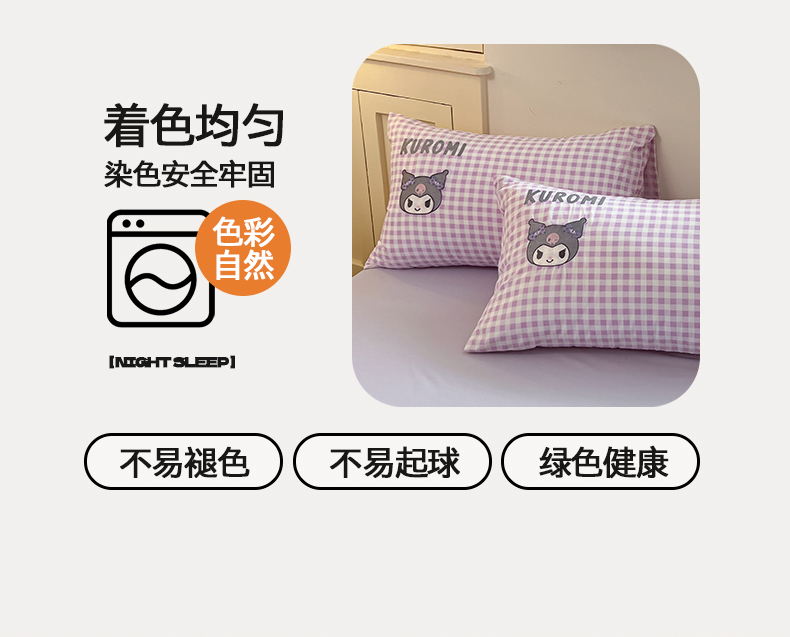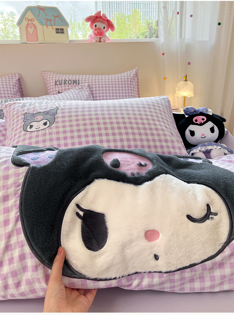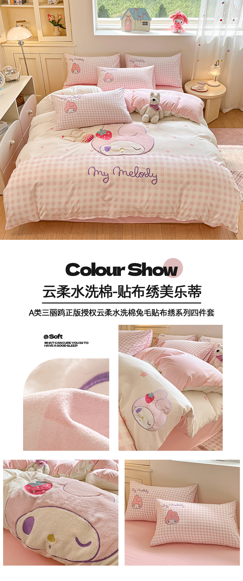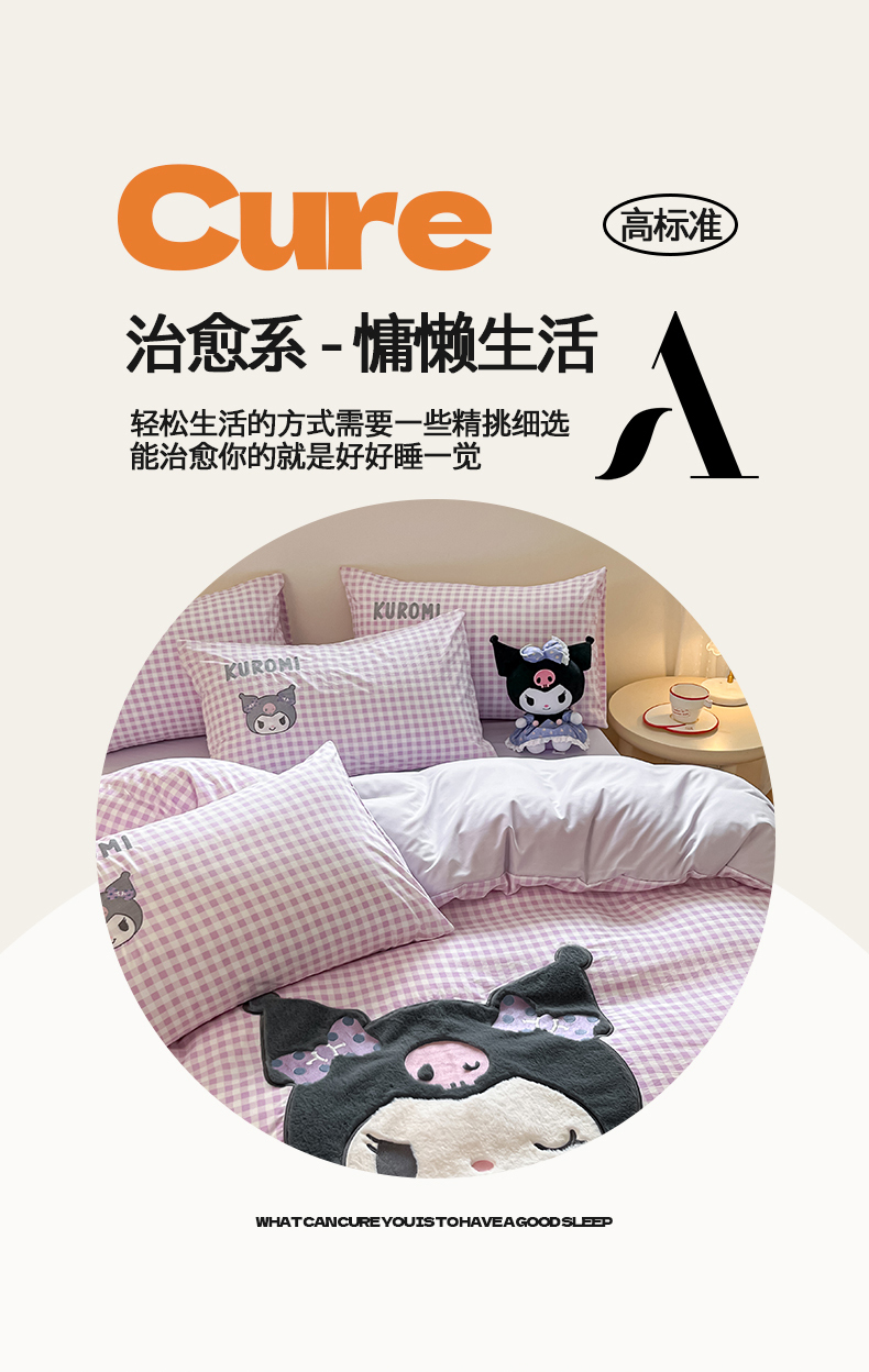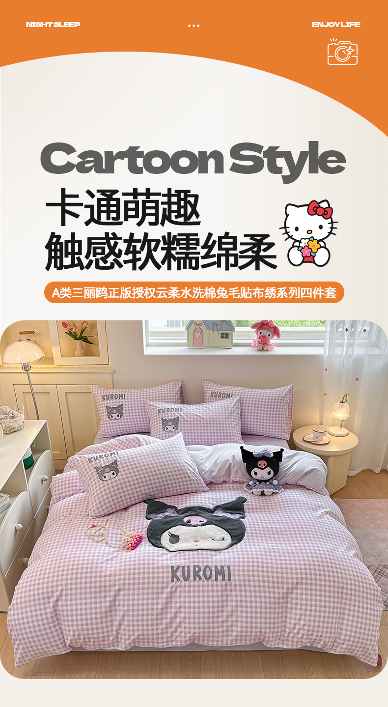当前位置: 91家纺网 > 商品网购 > 床品套件 > 四件套 > 水洗棉四件套 > 桃心家居 2026新款A类三丽鸥正版授权云柔水洗棉兔毛贴布绣刺绣软糯系列四件套 云柔水洗棉-贴布绣紫格库洛米