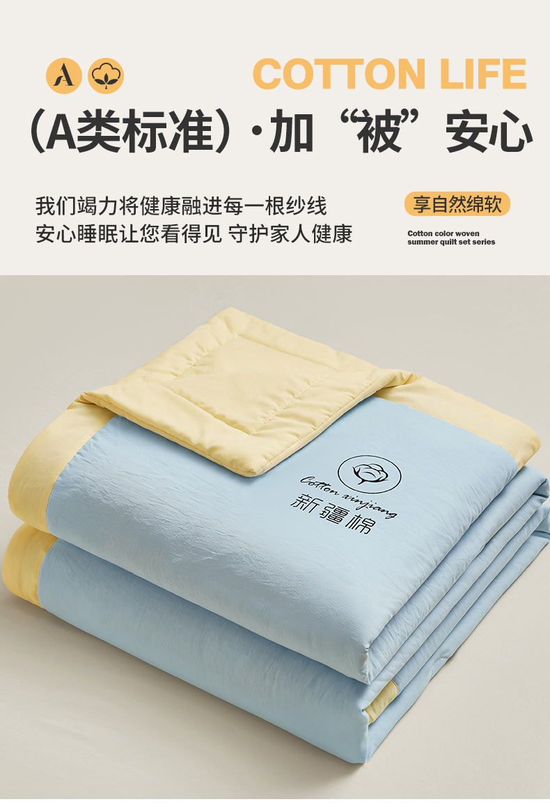 商品名称:晓时候 2026春夏新款纯色水洗棉双拼夏被新疆棉花被夏凉被空调被被子被芯-素夏 素夏-蓝黄
